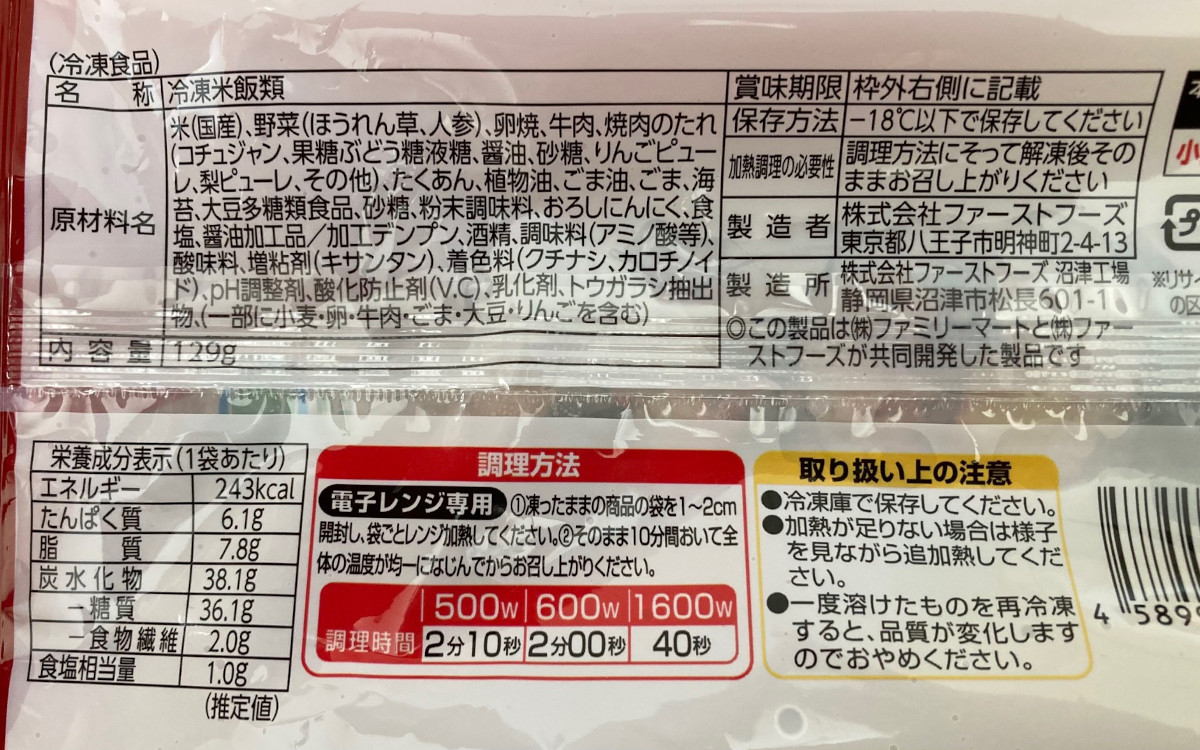 ファミマのキンパを美味しく食べるコツは、温めたあとに「10分置くこと」。こちらはパッケージ裏面の調理方法にも記載されているのですが、時間を置くことで味なじみが良くなり美味しさがまったく変わってきます。お腹が空いていても少しだけ我慢してくださいね。