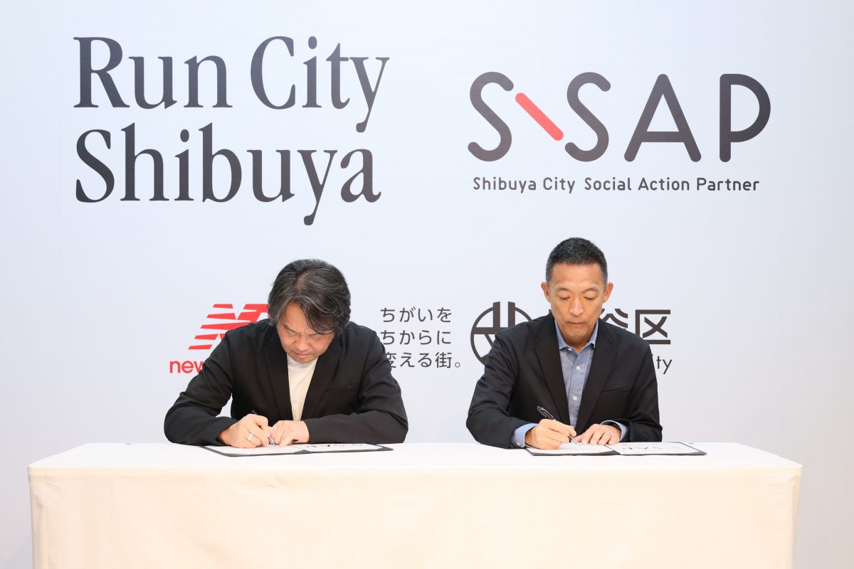 2023年11月9日、渋谷ヒカリエのイベント会場でニューバランスと渋谷区が、地域の社会的課題を解決していく公民連携制度「S-SAP協定」の締結式を行いました。そこでニューバランスが掲げたのが、「Run City Shibuya」という考えで、渋谷区との連携を強化することで、ランニング×都市を通じた、ランニングコースやコミュニティの場の創出など、多様な人がスポーツを楽しめる環境やカルチャーを作っていくことを目指します。