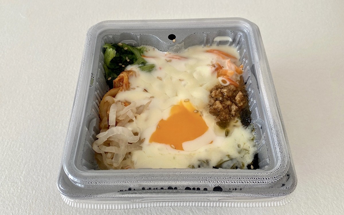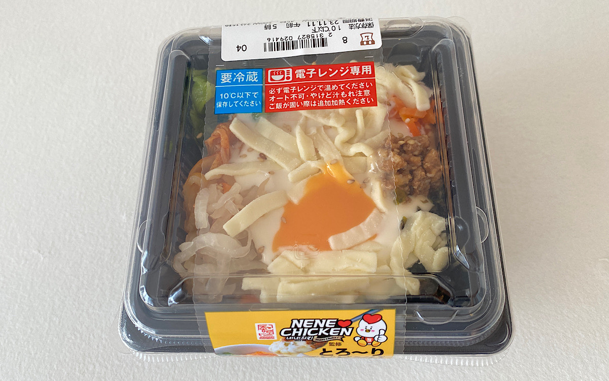 韓国を代表する料理の1つであるビビンバ。今回購入した「ネネチキン監修 とろ~りチーズビビンバ」(497円/税込)は、定番のアレンジであるチーズがプラスされています。公式ホームページによると、とろ~り伸びるチーズと卵黄ソースが決め手とのこと。ビビンバ、チーズ、卵黄と聞いて「もう美味しそう…」と期待が膨らみます。
