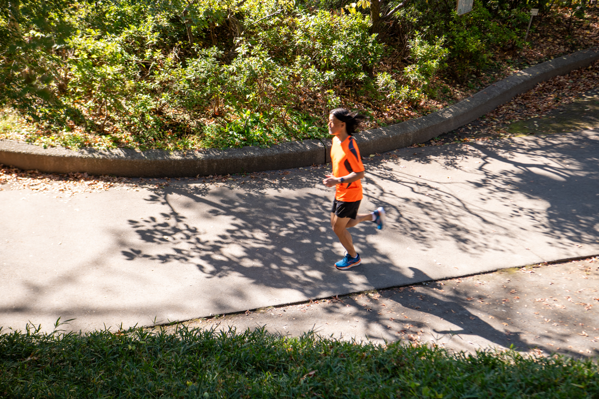 この連載での試履きは、“今週末、たまにはカラダを動かそっかなぁ~”な気分に合わせ、4つのスピードでシューズのインプレを行っている。まずは、シューズに足を入れた感覚、およびウォーキング。そして、「運動不足解消」が目的で走る、1㎞を約7分(=キロ7分)の、の~んびりペース。