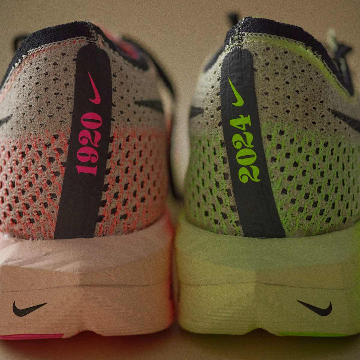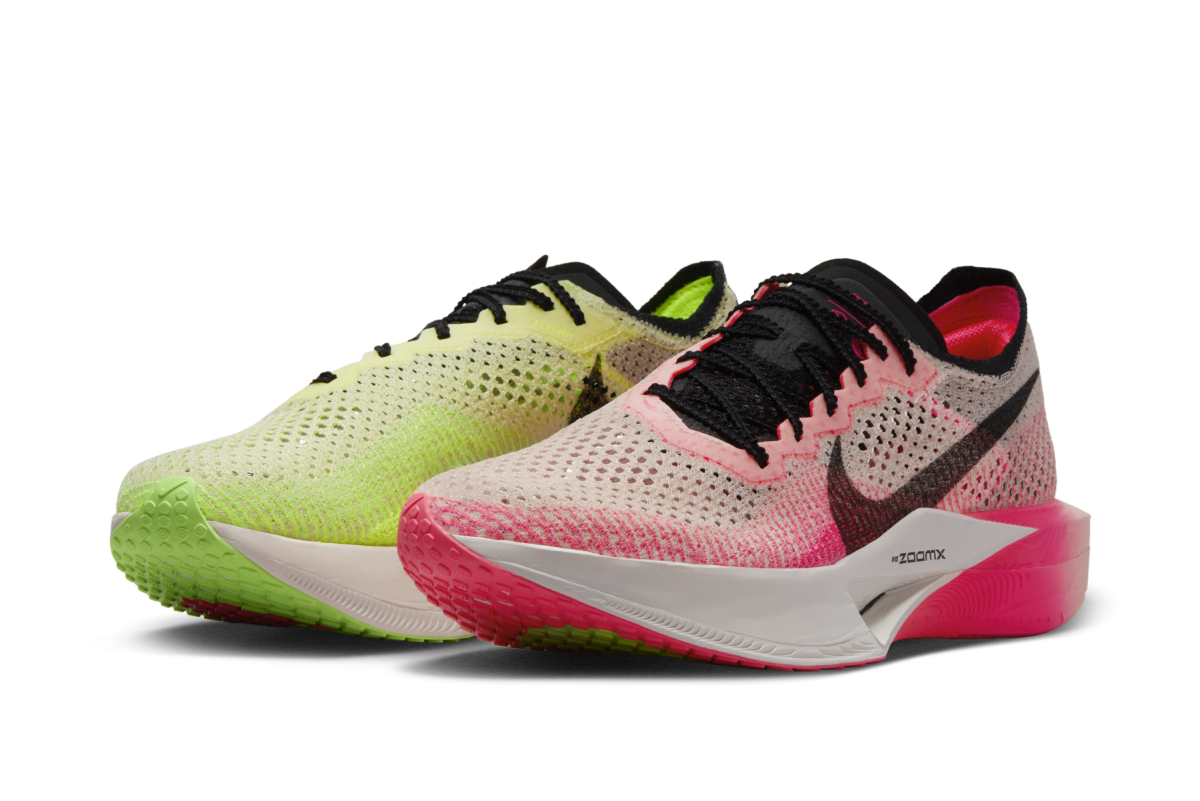 今回のEKIDEN PACKには、秋の駅伝シーズンから新年に向け、多くのランナーが駆け抜けるレースに向けたデザインが施されています。ナイキのレーシングシューズの速さを象徴するようなピンクとボルトカラーを使ったデザインで、それぞれのプロダクトには駅伝からインスピレーションを得た様々なグラフィックが施されています。