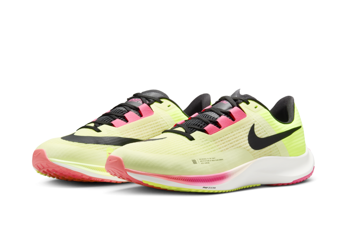 EKIDEN PACKのフットウェアは、レース本番用から日々のトレーニング用まで活躍してくれる幅広いモデルたち。レース本番シューズとして、これまでのランニングの常識を大きく変え、様々な記録を打ち立ててきた「ナイキ アルファフライ 2」と「ナイキ ヴェイパーフライ 3」には、ピンクとボルトの左足と右足で異なるカラーが採用されています。速さと耐久性に優れ、トレーニングなどで着用する「ナイキ ズーム フライ 5」、様々なレベルのランナーに対応し、日々の練習にも適した「ナイキ ペガサス 40」、そして、柔らかいフォームとズーム エア ユニットを搭載し、反発性にも優れ、トレーニングやレースに最適な「ナイキ ライバル フライ 3」など、幅広いランナーのニーズに寄り添ったシューズが含まれています。