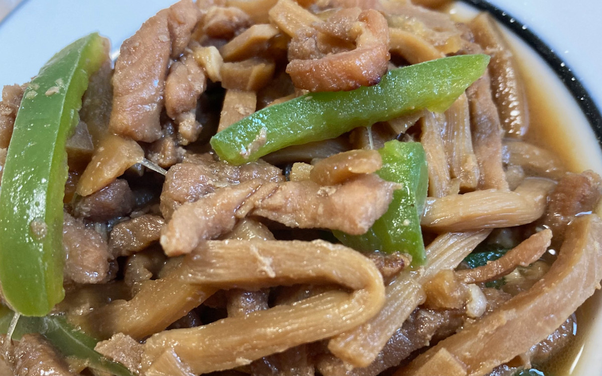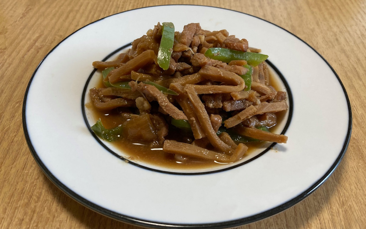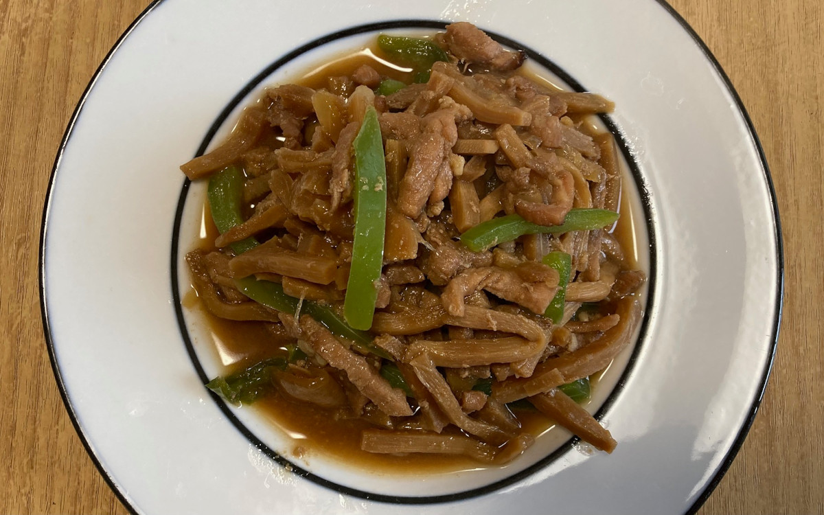 豚肉はオイスターソースベースの調味料がしっかり染み込んでいて、噛むごとに旨味を感じられました。そこにタケノコとピーマンのシャキシャキ感が加わり飽きがきません。さらによく炒められた玉ねぎが全体の甘みとコクを押し上げているように感じました。