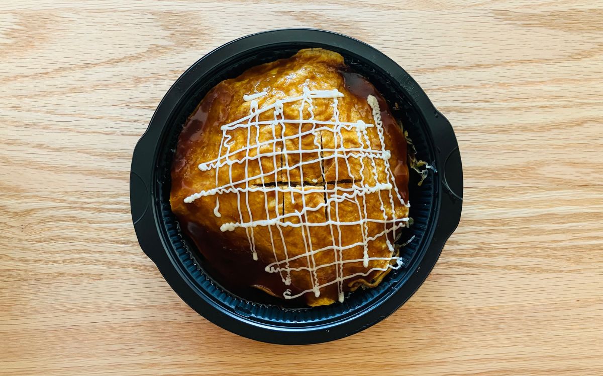 表記通りに500Wで3分加熱。ソースとマヨネーズをかけると、野菜と果実を使用した特製ソースの豊かな香りが漂います。これだけでも十分美味しそうですが、より本物感を求めてあおのりも振りかけてみました。漂う香りとビジュアルでもう満点なので、さっそく頂きましょう。