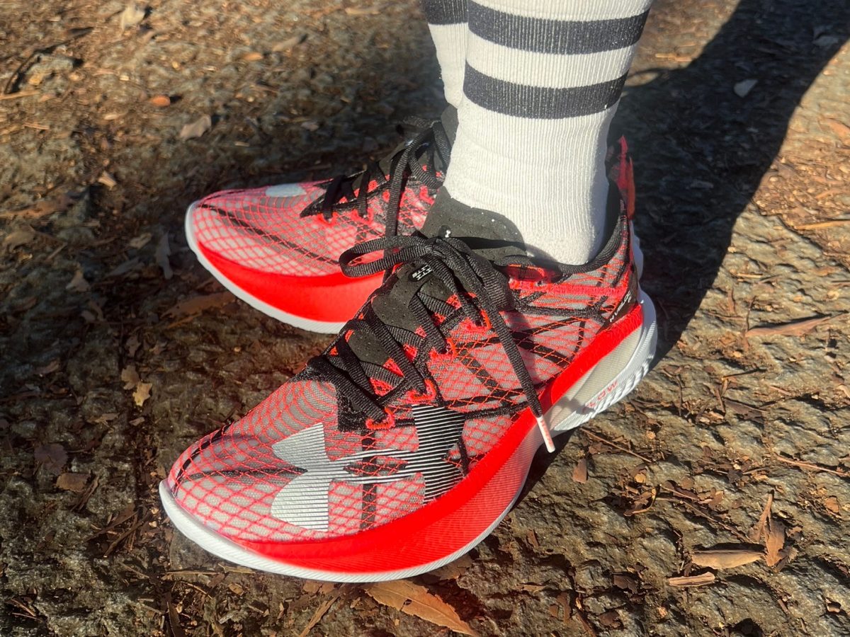 カーボンプレートの配置が前傾にセッティングされている効果なのか、着地のエネルギーが反発してバイーンと前に押し出される感じ。どんどん脚が回転して、「確かにこれはスピードが出るのも納得」。蹴っているつもりはないのに思い切り地面を蹴り上げてるかのように進む! アンダーアーマー史上最大の反発を謳うだけあります。