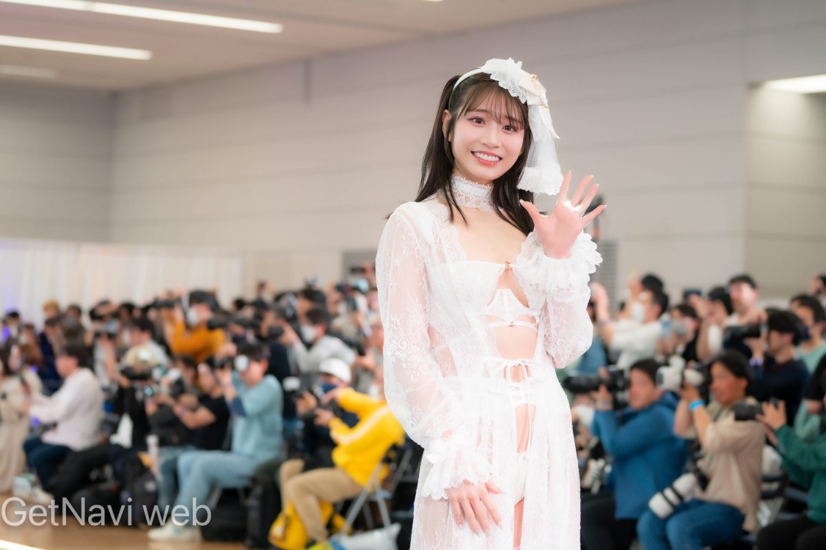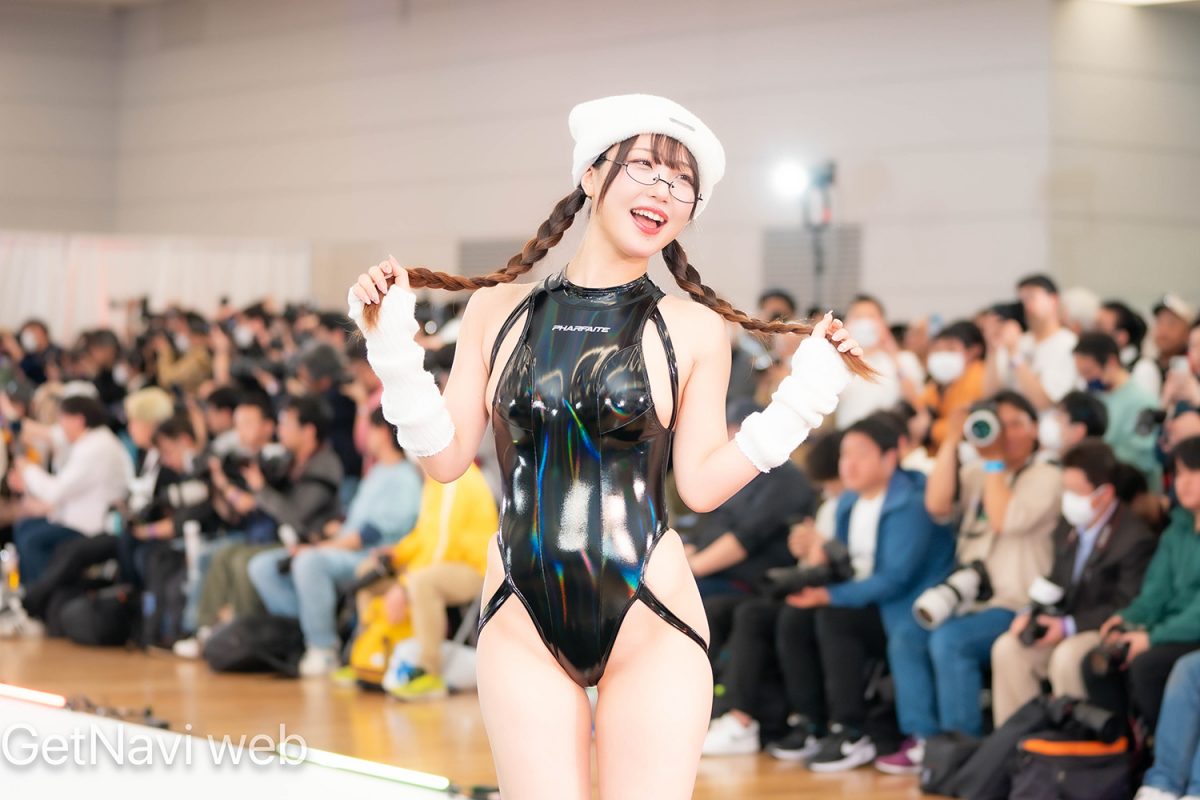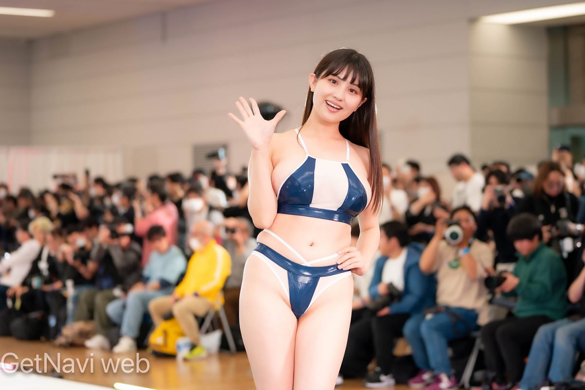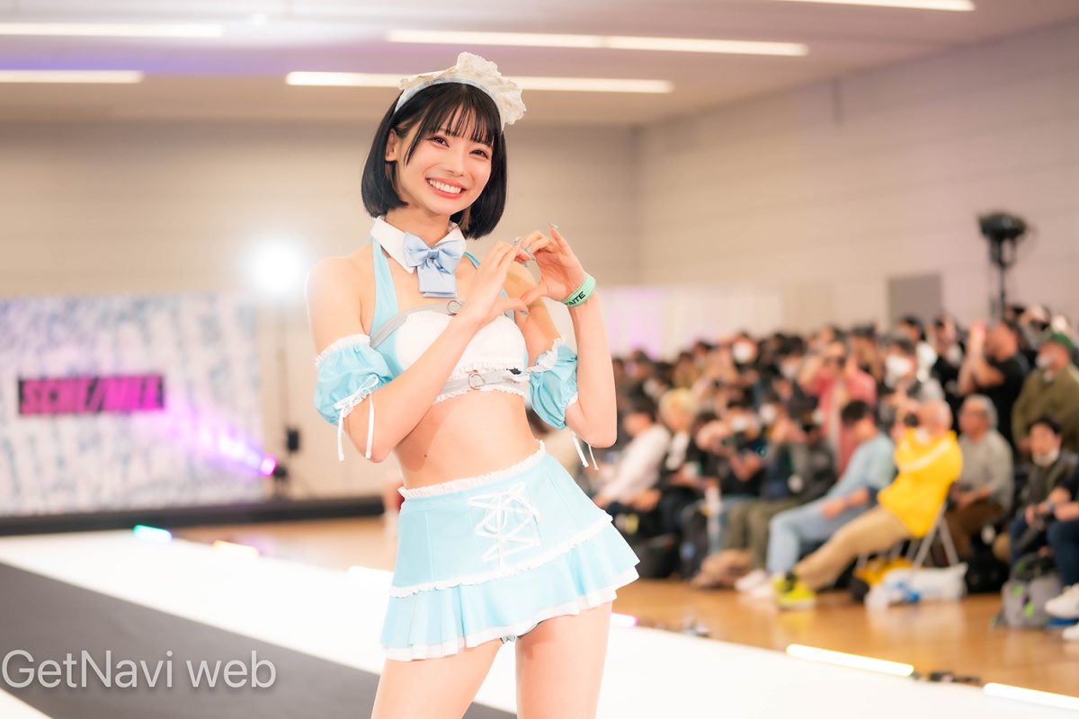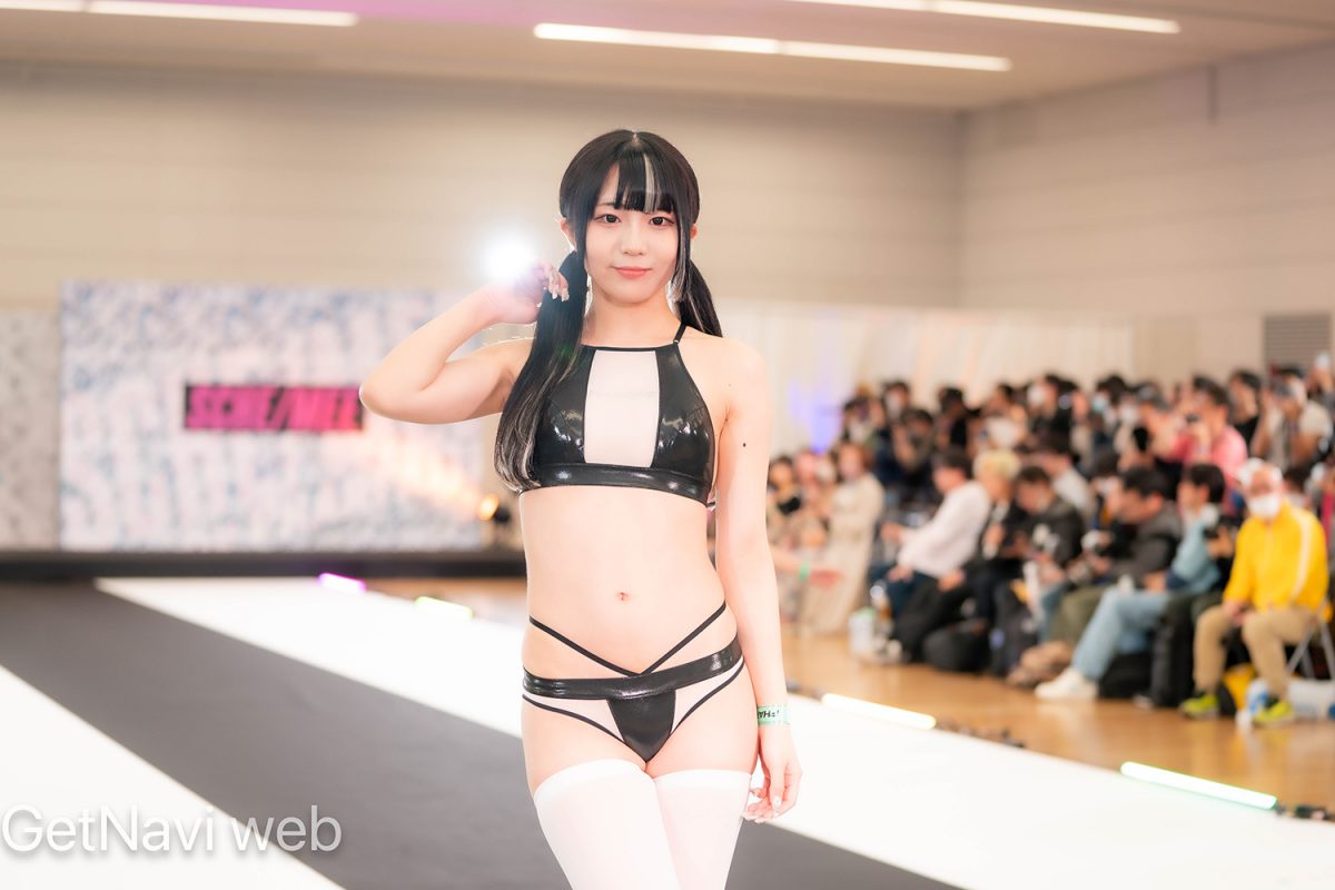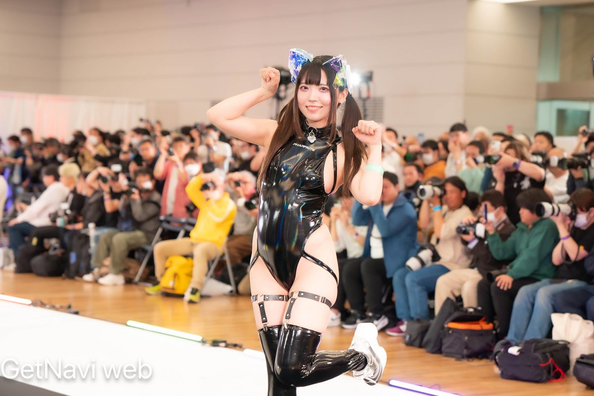 2部の後半には、本イベントの目玉ともいえる全長20mを超える特設ステージにて「PHARFAITEファッションショー」が行われた。ファッションショーの前半は、「JUWELBOX」と題してPHARFAITE着用モデルがそれぞれにオリジナリティあふれるコーディネートを披露。後半は「SHOWCASE」と題して、これまでに発売された人気のコスチュームから最新作のコスチュームまで、PHARFAITEのコンセプトが存分に味わえるファッションショーが展開された。ランジェリータイプや競泳水着タイプなど、セクシーなコスチュームを着こなした出演者約100名がランウェイを歩く姿は圧巻! ステージ両側に設けられた客席は、カメラを持ったファンで埋め尽くされていた。