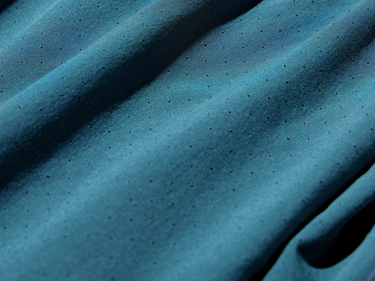 伸縮性に優れた4WAYストレッチが効いた素材を採用することで動きやすく、パンチング加工によって通気性と軽量性がアップ。