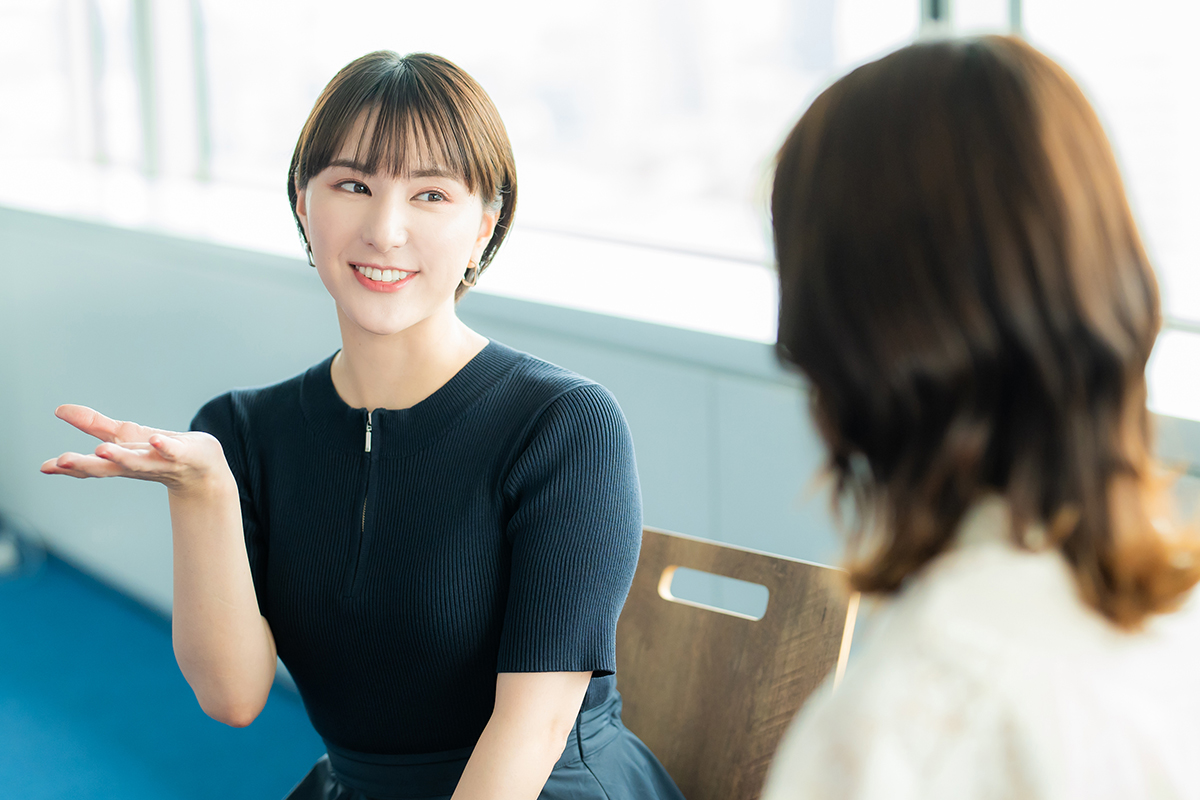 白井 清音さんに褒められた! うれしい!! ただ、実際に研修をしてみると、みんなすごく成長しているので、私からは何も言うことがないんですけどね。むしろ、“何か言わなければ……”と思って、頑張って絞り出すことがほとんどなんです(笑)。それに、私が積極的に行動に起こさなくても、みんなのほうから「ぜひ私にも教えてください」と声をかけてくれることも多くて。そういった言葉をもらうと、“みんな、もう一歩レベルアップしたくて頑張っているんだな”と思えて、私もうれしくなる。ですので、私も求められる限り、みんなのお手伝いになれればなと思っています。