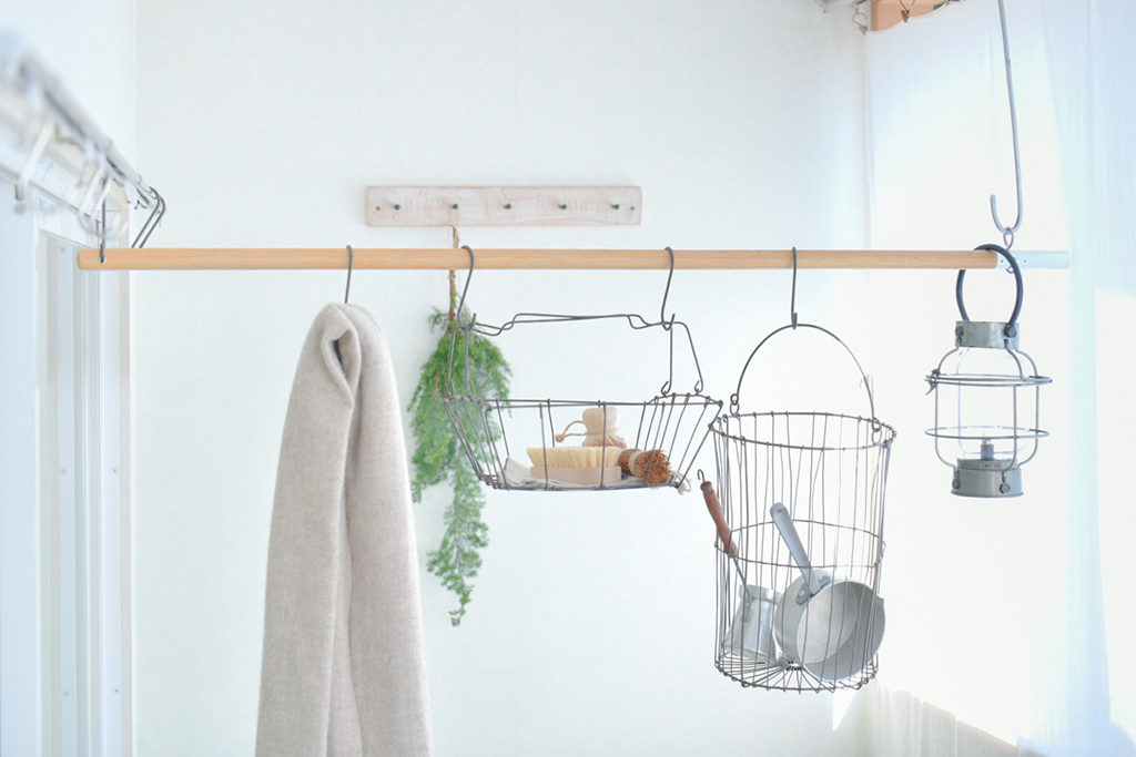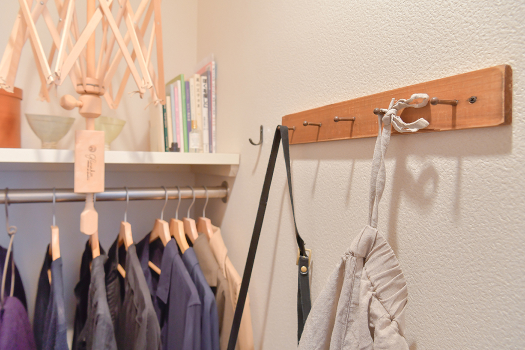 大切なのは、動線を考え、『ここにかける場所があると便利だな』と思う場所に、フックやバーを設置すること。 他のアイテムとも共有すれば、意外と空間になじむので飾るような感覚で保管が可能になりますよ」