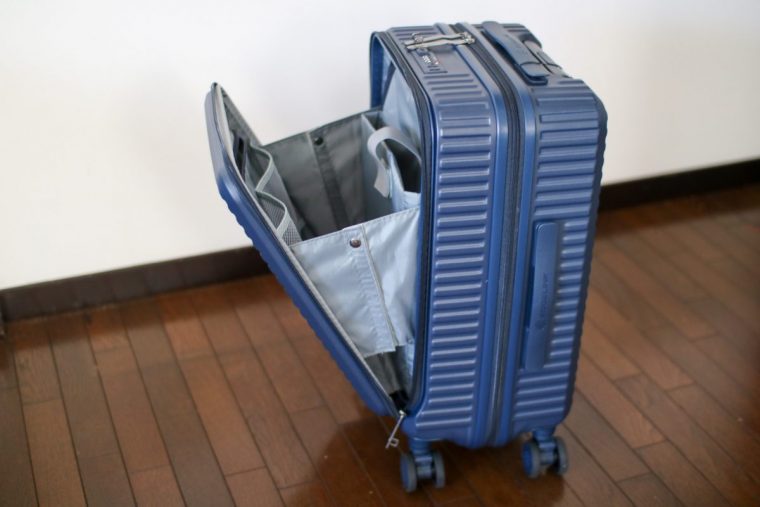 そもそもフロントポケットという言葉にあまりなじみがないので調べてみたところ、スーツケースの前面についている収納部分のことなのですね。荷物の出し入れがしやすいように設計されているのが特徴です。
