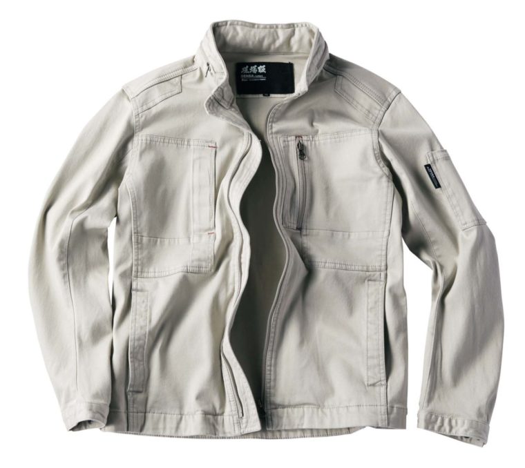 丈夫なコットン生地を使ったハードに着倒せるワークジャケット。3D立体裁断によって腕を大きく動かした際の肩や背中のつっぱり感が緩和されており、着心地は上々。襟部分に収納できるフード付きです。