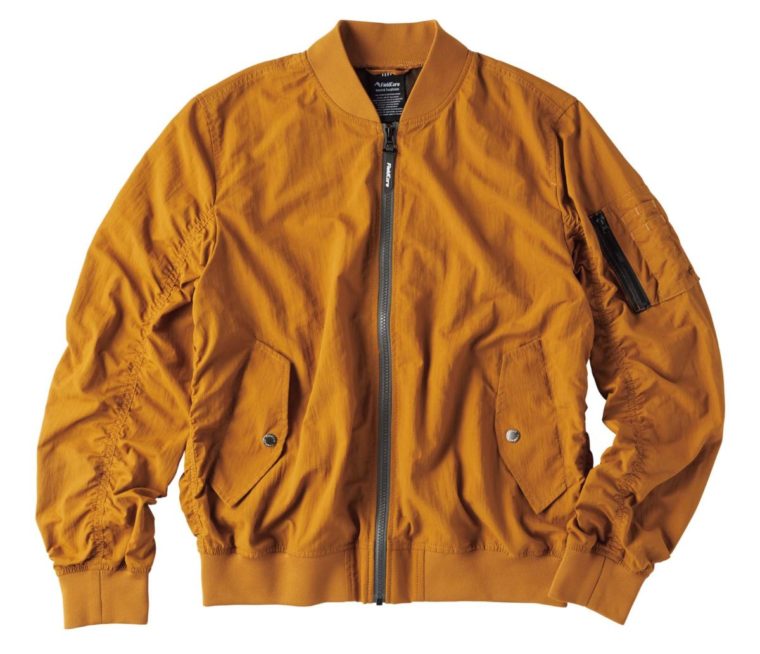 あらゆる状況でオールマイティに使える、MA-1タイプのライトアウター。繊維のまわりに保護膜を作るテフロン加工が施されており、水泥や油などあらゆる汚れを強力にブロックします。