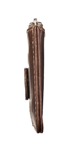 フラットポーチの外側に3段のカードホルダーを装備。素材はイタリア産のカーフスキンを0.7㎜までなめした、薄くて丈夫なアニリンレザーを使用しました。カナダの熟練した職人によるステッチも美しいです。●サイズ:W120×H70×D18㎜