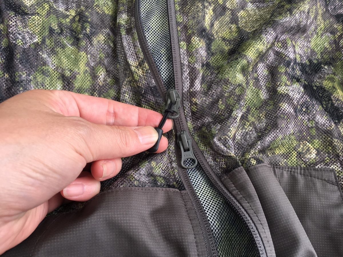 ジップは頭上まで閉めることができ、顔まで覆える仕様となります。もちろんメッシュなので視界はバッチリです!