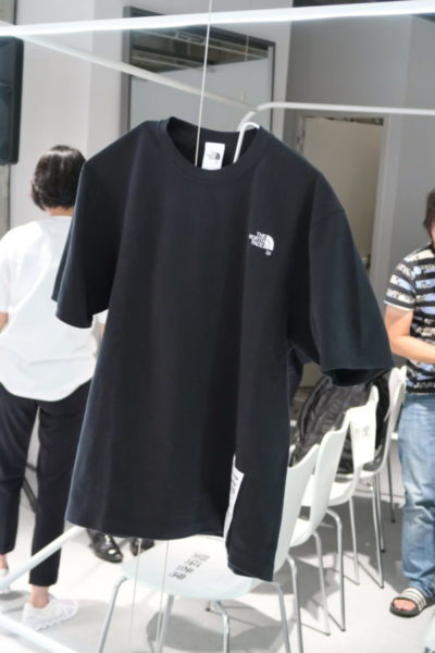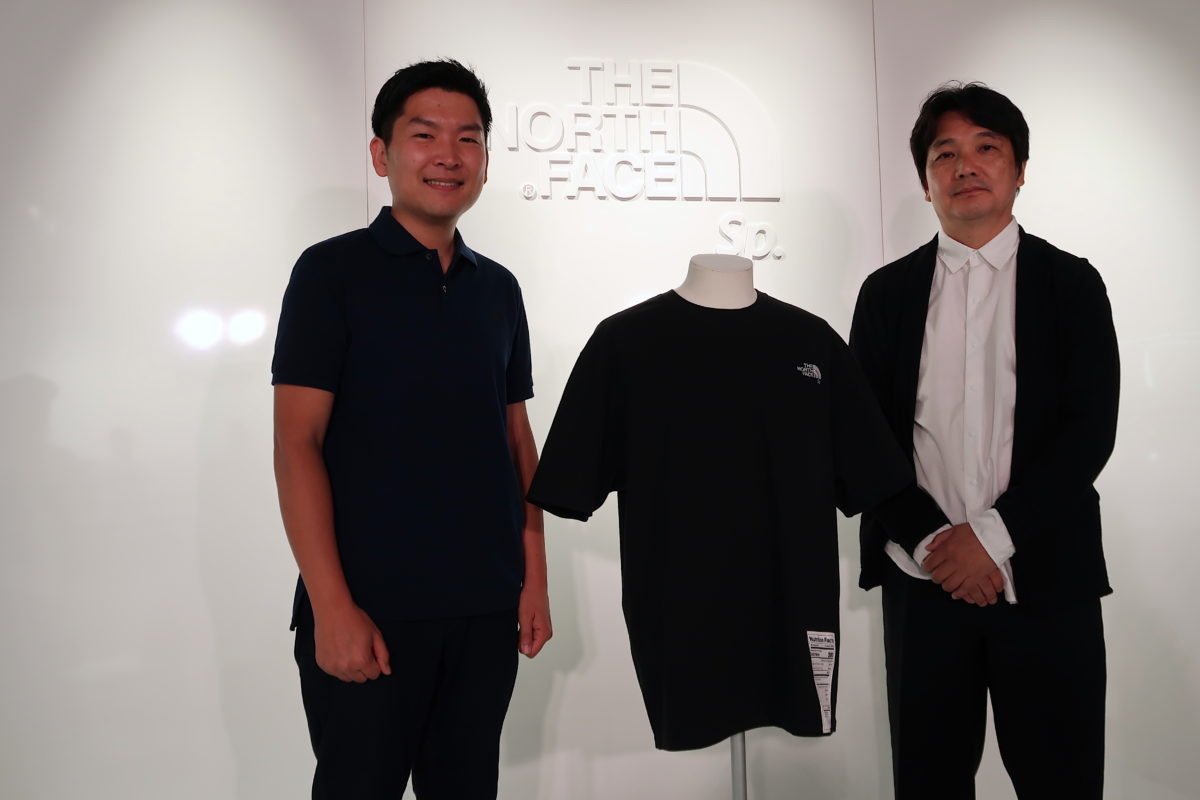 しかし、Spiberは諦めず制作テストを繰り返し、量産化に向けた加工技術を確立。「天然のクモの糸を模倣する技術からはじまった研究開発は、現在ではより多様なタンパク質素材を作る段階に入りました」と、スパイバー代表の執行役の関山さんは言います。そして本日、満を持して披露されたのが、この「THE NORTH FACE Sp.」ラインの「Planetary Equilibrium Tee(プラネタリー・エクイリブリアム ティー)」。地球規模の環境課題に対するメッセージを込めています。
