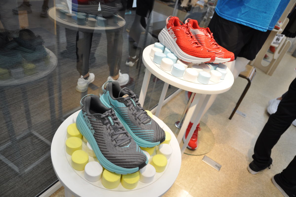 今回の展示会で、個人的に興味があったのが「HOKA ONE ONE」のランニングシューズ。実は個人的にも愛用していて、北海道で開催された100kmを走るウルトラマラソンでは、このシューズのおかげで完走できたといっても過言ではありません。