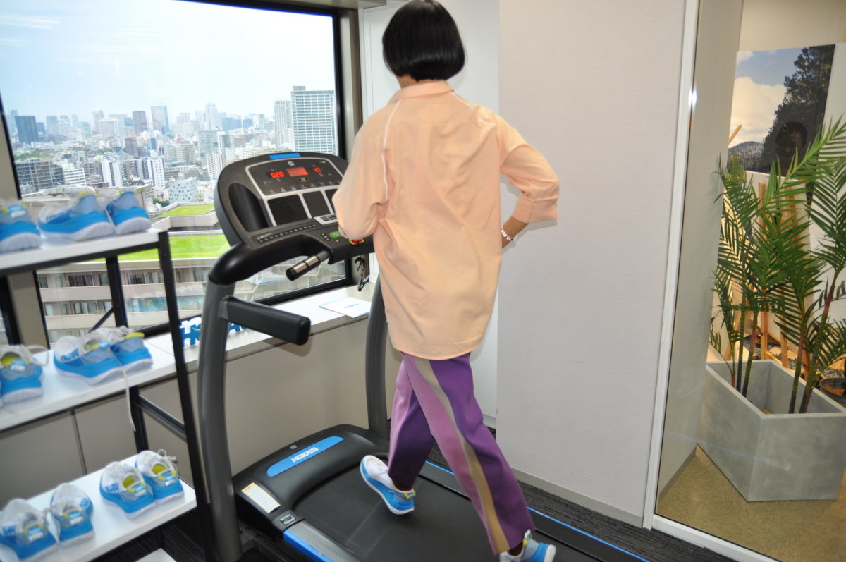会場にはランニングマシーンが用意され、CARBON Xを履いて走ることができました。走ってみた感想は「とても軽いこと」と「走りやすい」こと。メタロッカーテクノロジーのソールは事前と足が前に出る感覚で、いつもと同じ感覚で走っていてもスピードが出ている気がします。柔らかいソールのおかげで、着地した時の衝撃も柔らかく感じました。現在はブルーとホワイトのバイカラーだけですが、広報担当さんのお話では今後はカラー展開も広げて行くそうなのでとっても楽しみです。