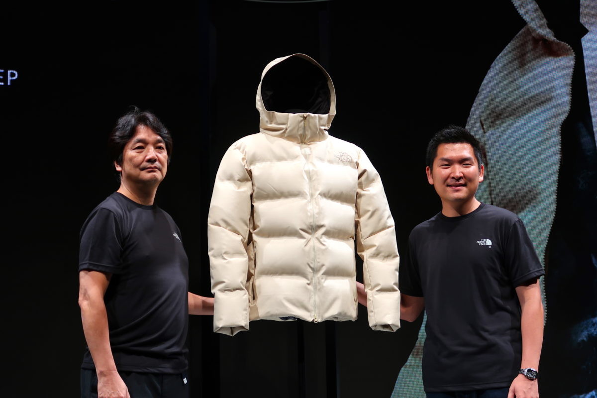 3層から成る表地の表側にゴールドウインとSpiberで共同開発された構造タンパク質「ブリュード・プロテイン」を100%使用。表地の中間層に防水透湿ラミネートを、中綿にTHE NORTH FACEのハイエンドモデル「SUMMIT SERIES(サミットシリーズ)」にも採用実績のある「900フィルパワーのクリーンダウン」を使用し、防水透湿・保温性もバッチリと言います。