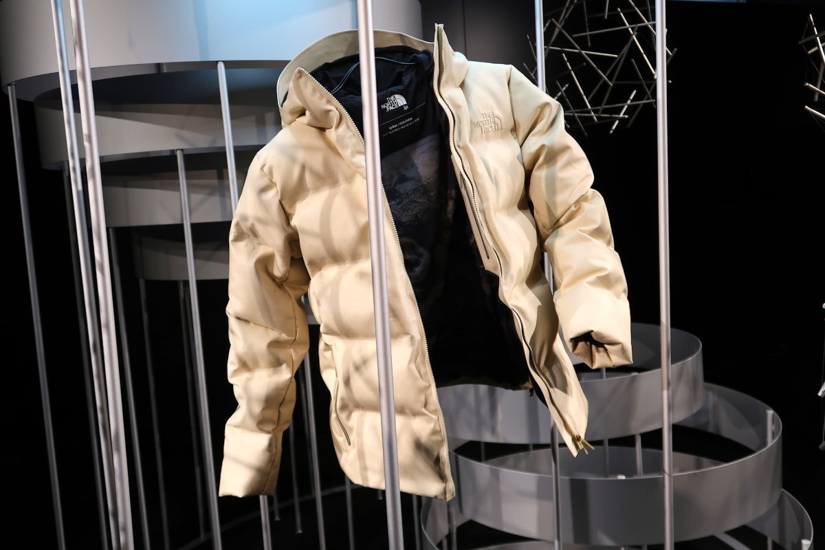 今回のTHE NORTH FACE Sp.のMOON PARKAは、冬のアウトドアシーンからタウンユースまで幅広く使えるよう、シンプルなデザインでした。残念ながら試着はできませんでしたが、手で触った感覚では軽い印象。重量感のあるダウンジャケットは着用しているだけで、肩が疲れてしまうので軽さは筆者的に必須。地球環境に配慮した糸をつむんだシンプルな表地と、華やかなプリントを大胆に施した裏地。そのギャップのある表情のポイントも高いです。