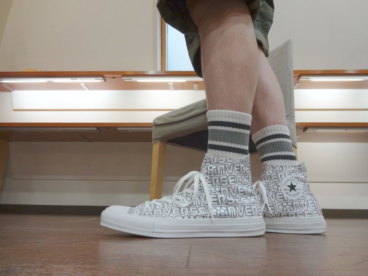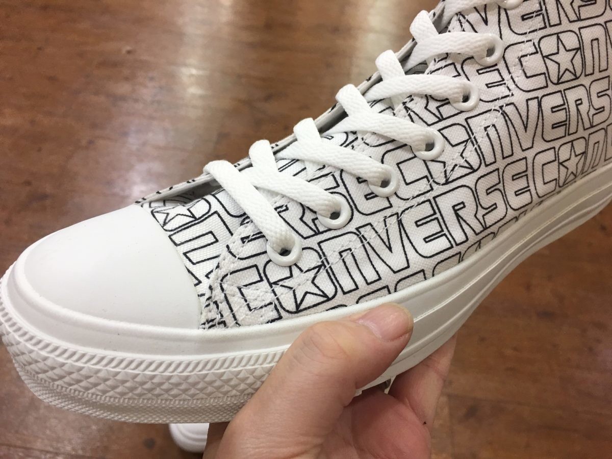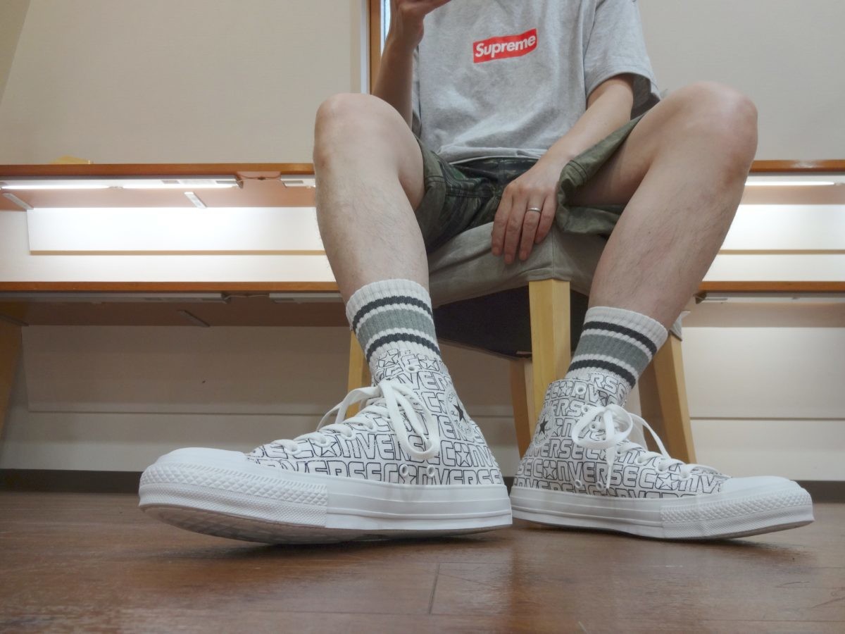 ベースとなっているのはいつものオールスター。タフなキャンバス地にモノクロでオールスターのロゴが全面に配されています。