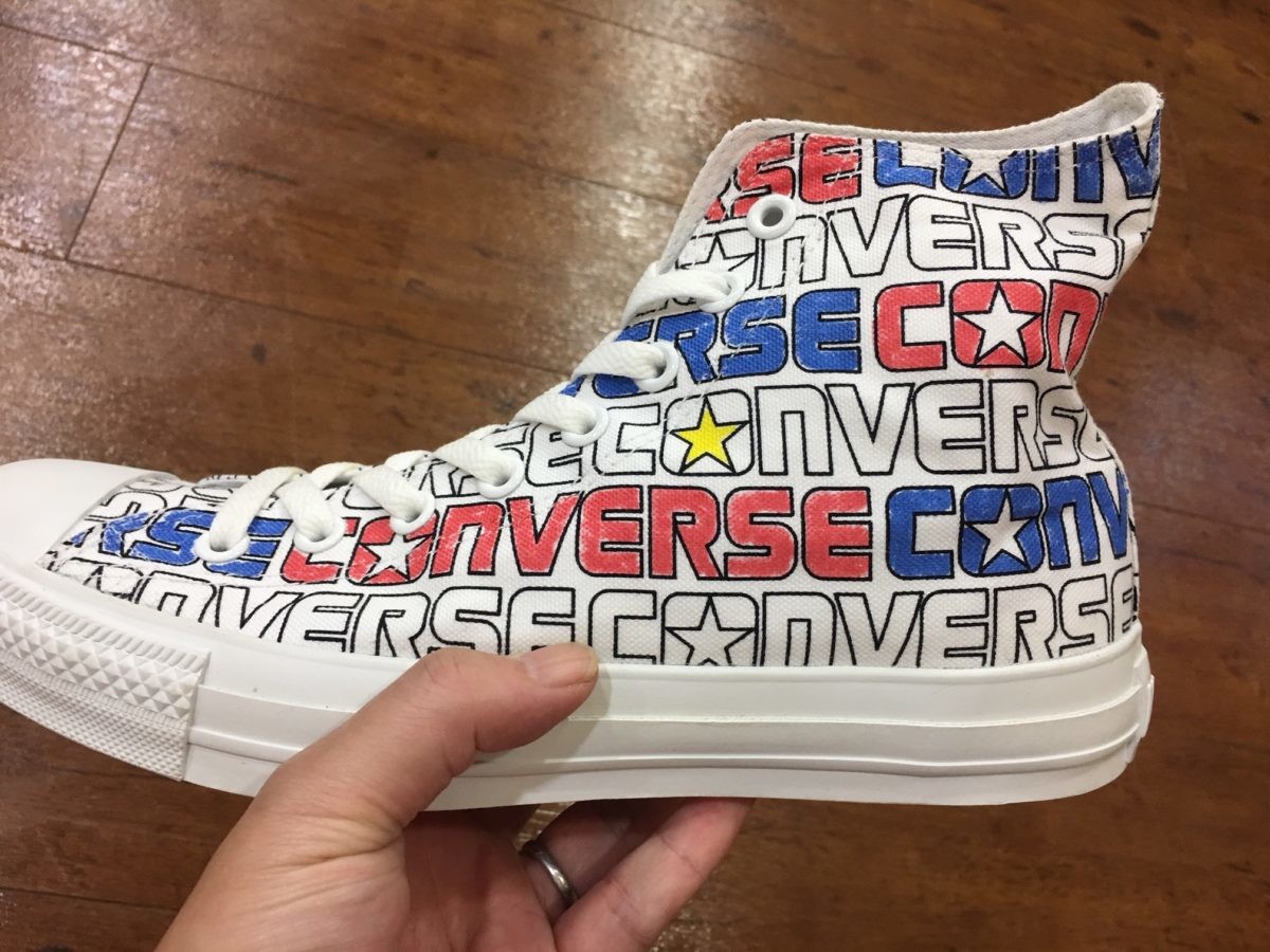 オールスターのカスタムペイントとは、ワタクシ本間的には懐かしい~ですね~。パンク好きだった若かりしころ、キャンバスオールスターに好きなバンド名をTシャツくんのインクでペイントしたり、パッチを縫い付けたりしてカスタムしまくっていた時代を思い出します。ワタクシ的には青春時代を彷彿とさせる一足ですな~! もちろんペイントしなくても全然OK! クールなロゴパターンが今っぽくていつものコーディネートにすんなりとハマってくれますよ!