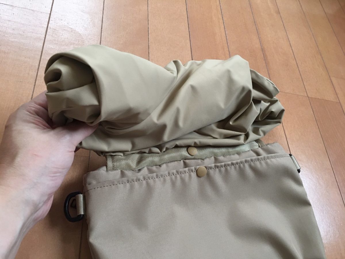 ちなみに、ショルダーバッグのボディは高密度に織られたポリエステルツイル生地を使用していて、畳んでいてもシワになりにくいのが特徴です。