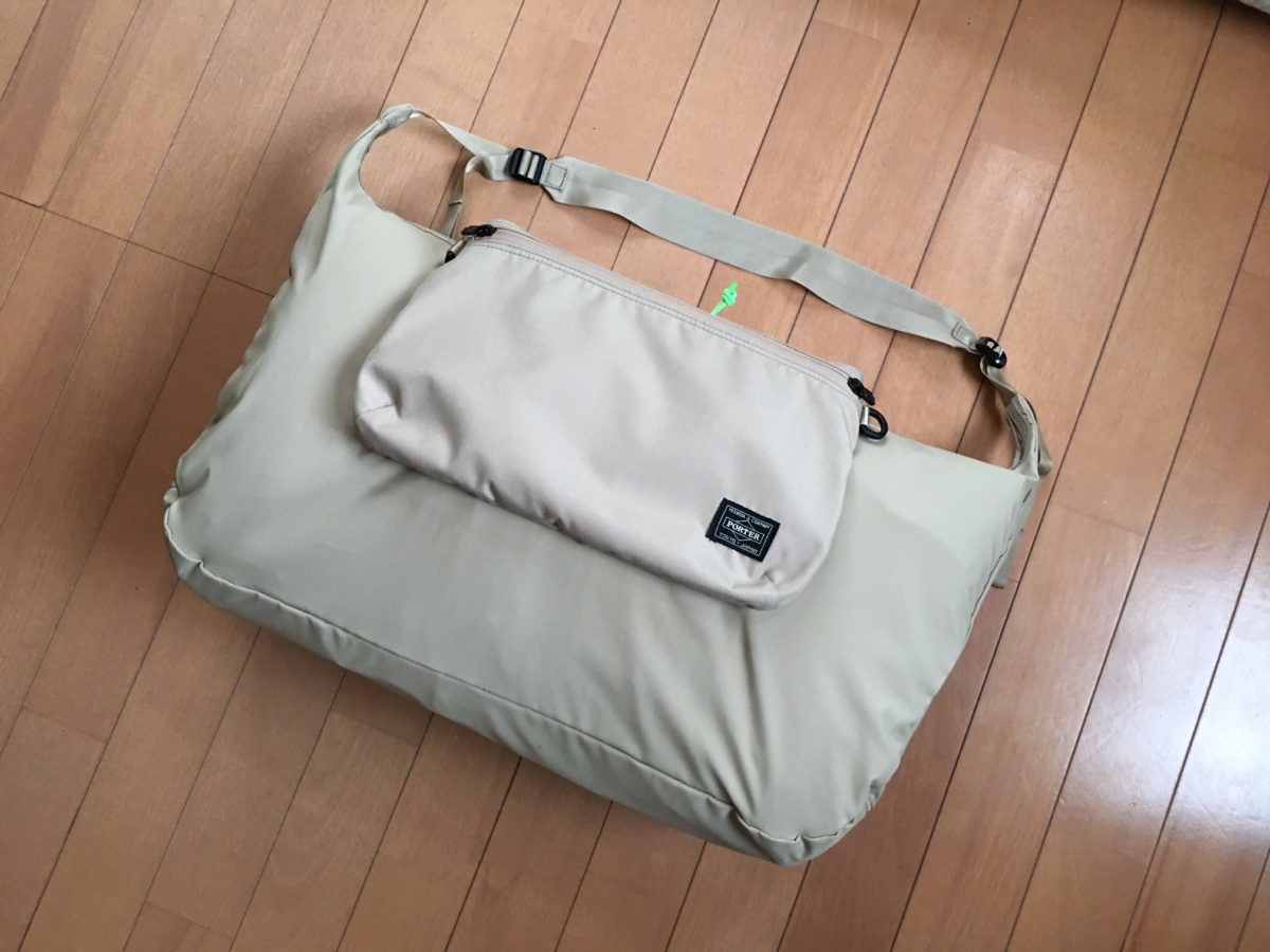 一見するとスタンダードなサコッシュ。ベージュとブラックの付属パーツが好相性で、ポーターらしい可愛らしいデザインに惹かれますね!