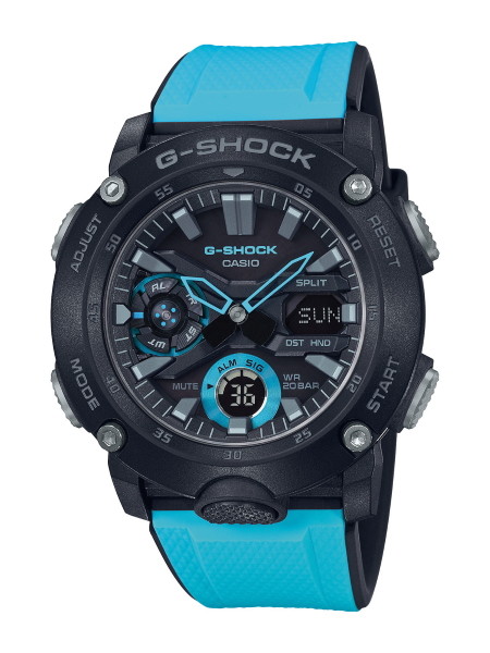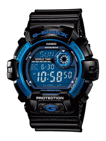 ブルー液晶を差し色にした一本。腕を傾けると発光するオートライト機能付き高輝度LEDを搭載。●ケース縦55.1×横52.5mm