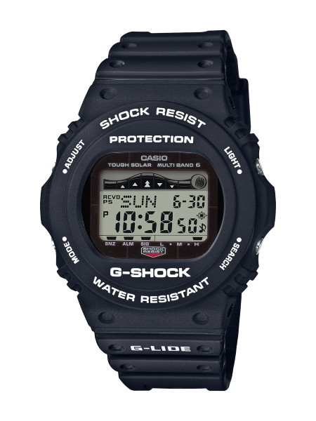エクストリームスポーツライン「G-LIDE」の一本。世界の潮汐データがプリセットされています。●ケース縦48.9×横45.4mm