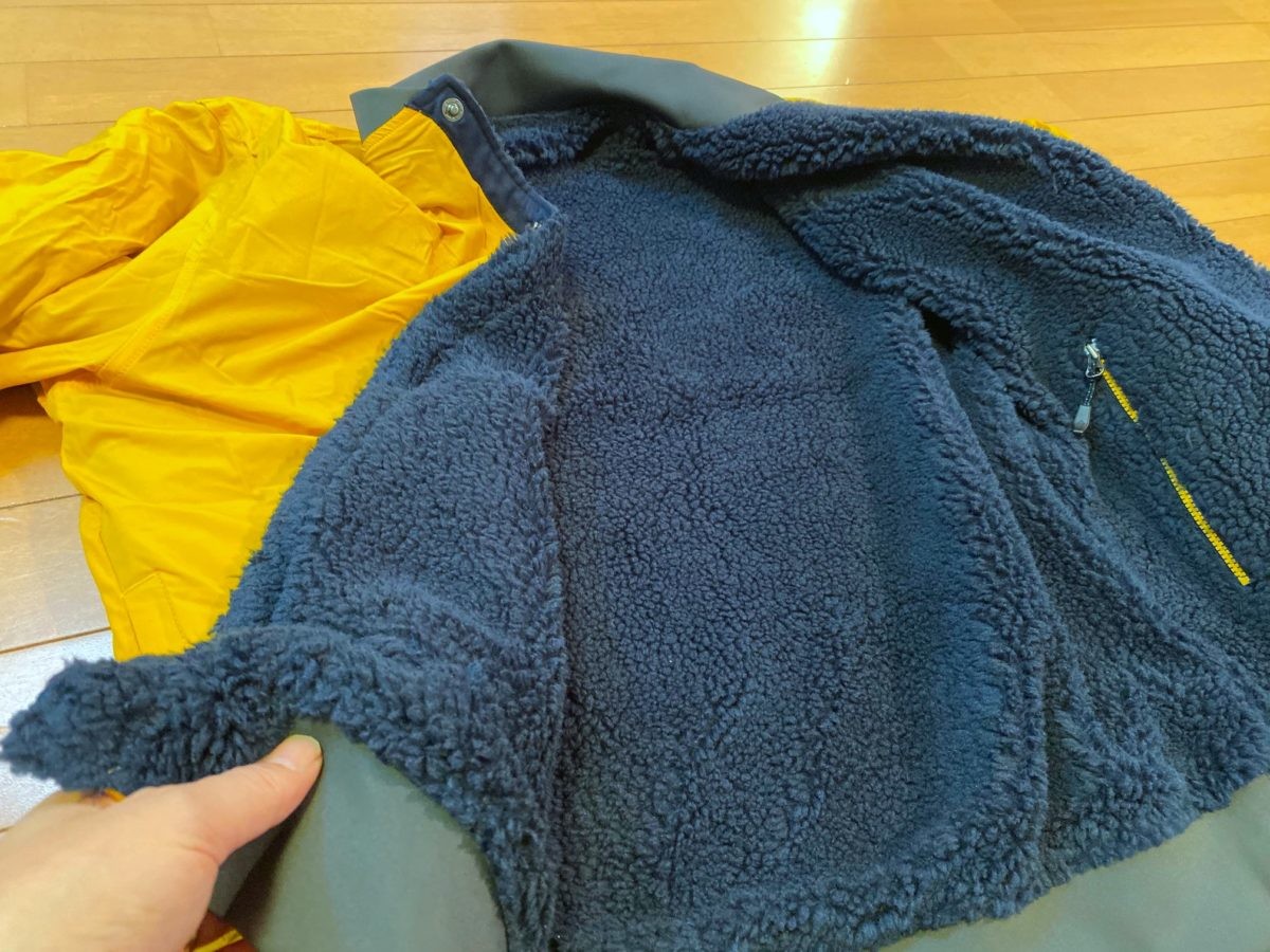 裏地はボア状のフリースを採用していて、気温が上がって来たらこちらを表面に着用すれば快適に。