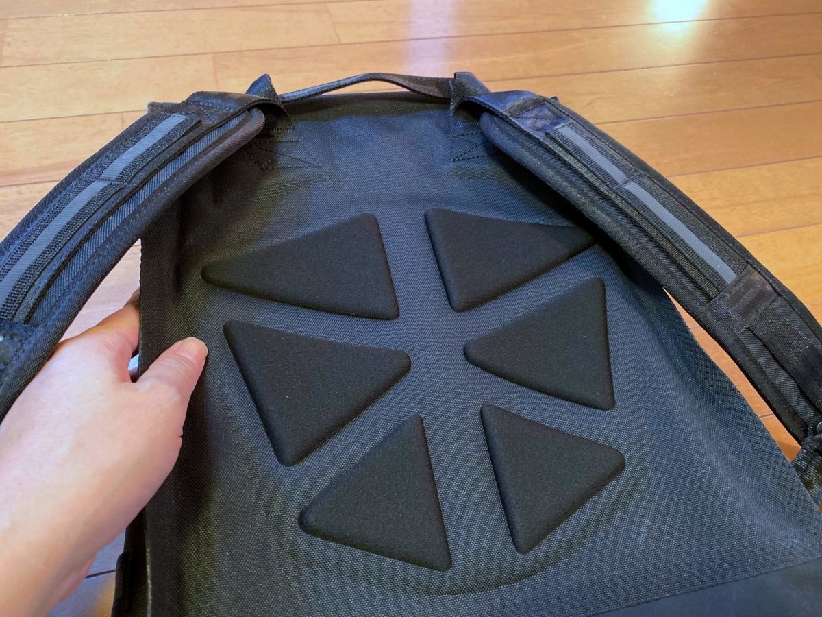背面のパッドは6分割されていて、背中の丸みに沿ってピッタリとフィットしてくれます。