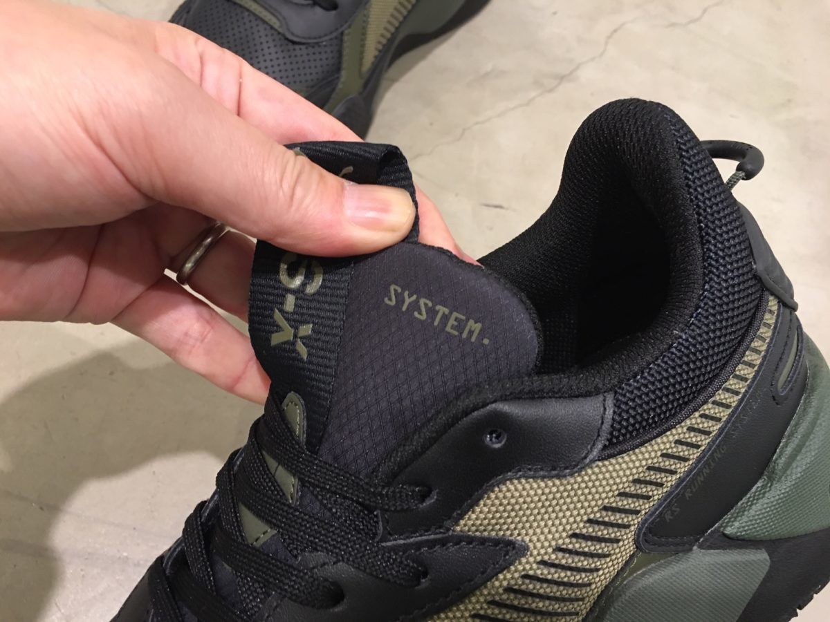 ダッドスニーカーの代表格とも言えるRS-Xがこんなにもクールに仕上げられているなんて、放っておく手は無いはず!ミリタリーっぽい カラーリングによって、より重厚な雰囲気なので、チノパンなど旬なワイド系ボトムスとも好相性ですよ!