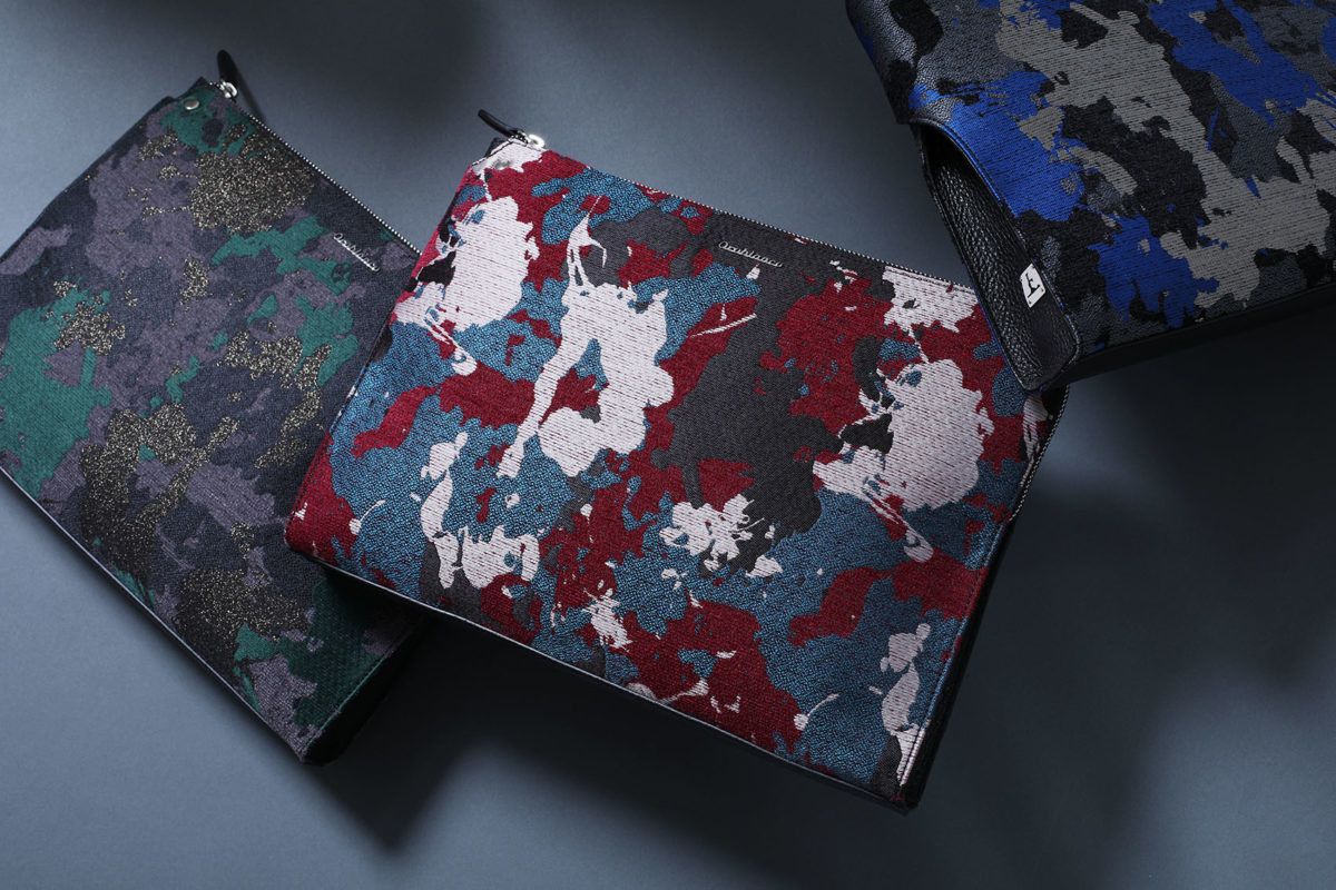 JOTARO SAITOは、和を楽しむライフスタイルを提唱し、現代空間にマッチするファッションとしての着物を追及することをデザインコンセプトとしています。今回、その着物や帯に用いられるオリジナルの意匠を用いたジャカード織りのファブリックとイタリアンレザーを組み合わせ、トートバッグ、バックパック、クラッチバッグの3型で展開。センターにはオロビアンコのロゴプレートを、サイドにはロゴをあしらったダブルネーム仕様です。現代的でミニマルなムード漂わせ、大胆かつ印象的なファブリックを組み合わせることで、魅惑的なデザインに仕上げています。
