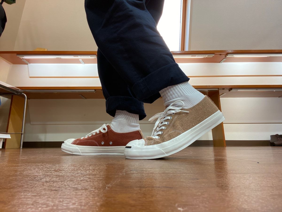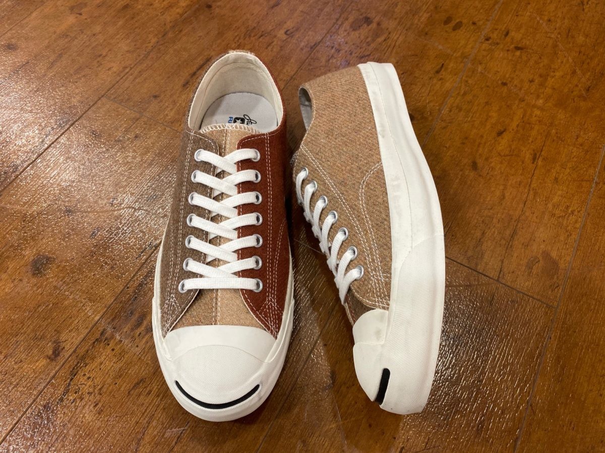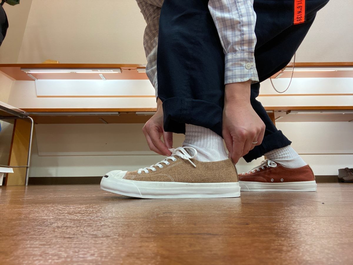 「ジャックパーセル」といえば、同名のバドミントンプレイヤーが開発に参加して、1935年に誕生した名作スニーカーです。ヒールの“ヒゲ” やトウの “スマイル” といったディテールで長年親しまれる、コンバースを代表するアイコンと言っても過言ではありません。そのシンプルで洗練されたデザインから、デニムからチノ、スラックスまで様々なボトムスと相性が良く、今もなお根強い人気を誇っています!