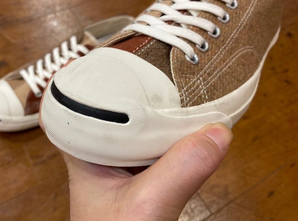 もちろんジャックパーセルではお馴染みのトウに配されるスマイルは健在です。今作はブラックをチョイスして、全体の印象を引締めています。