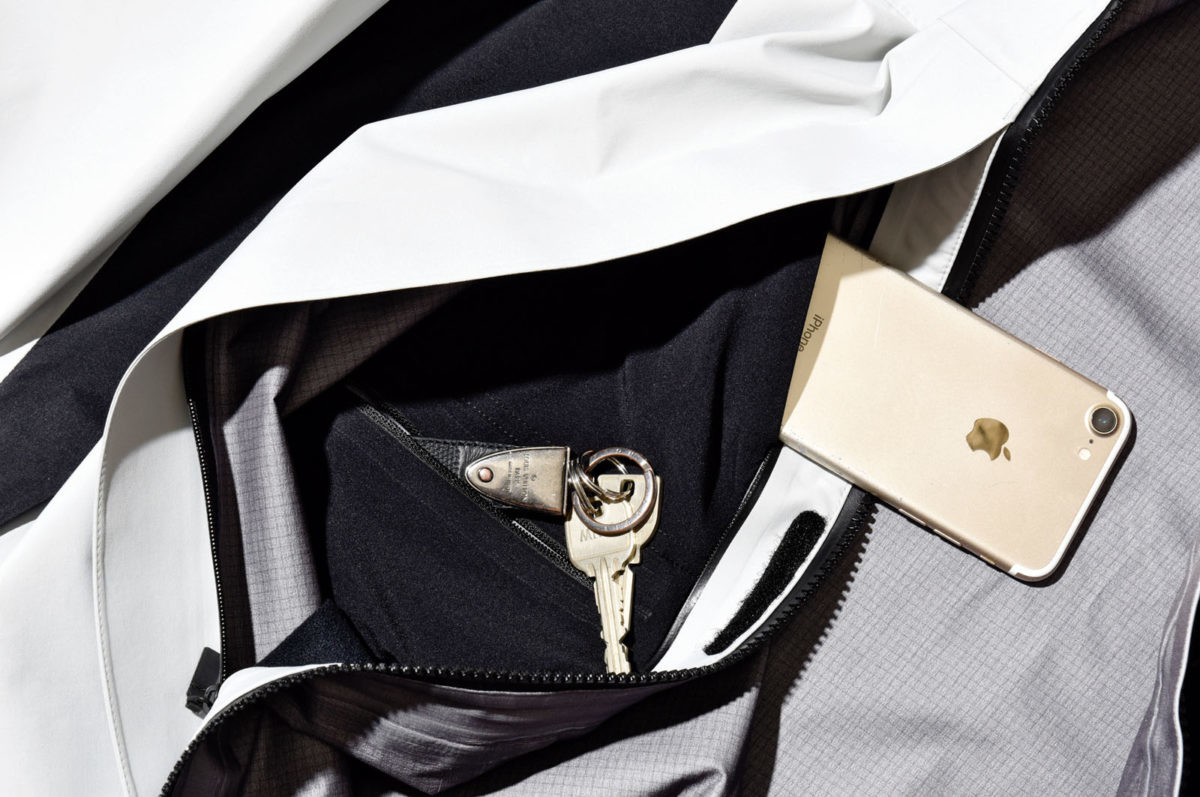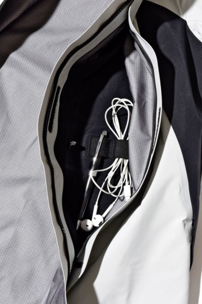 「ハンガー(格納庫)」という名を持つ、都市生活の必需品をスマートに携帯できる一着。3層のGORE-TEX Proを採用し、フィールドでも通用する高い防水透湿性を実現しました。