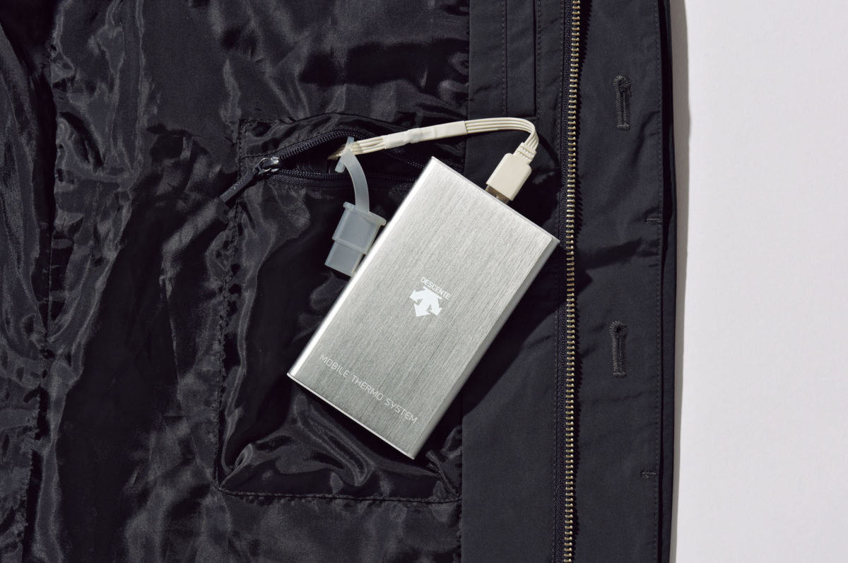 そんな新潮流を象徴するのが、フランスのスポーツブランド、ルコックスポルティフのモバイルサーモコート。外部バッテリーを熱源とするヒーターユニットをウエア内部に搭載しており、まるで暖房器具を身にまとっているような心地良い温かさを体感できます。