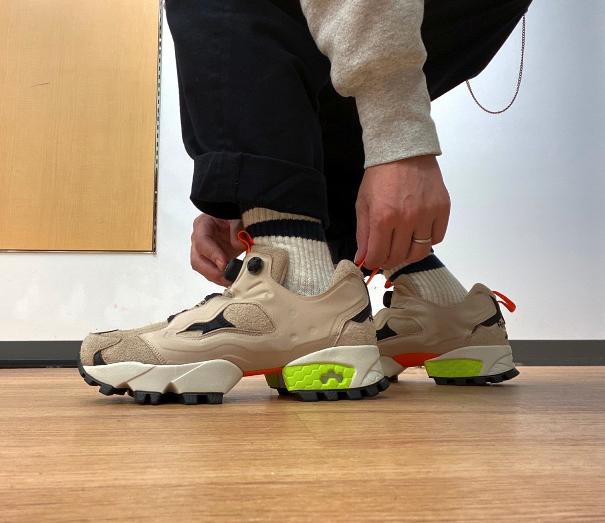 こちらがインスタポンプフューリー初のトレイルモチーフモデル「インスタポンプフューリー トレイル」です! この武骨なルックスが男心をくすぐりますね。 本作はインスタポンプフューリー本来のフォルムやディテールはそのままに、アッパーの素材使いとタフなアウトソールを搭載する事で、悪路にも強い一足へと仕上げられています。