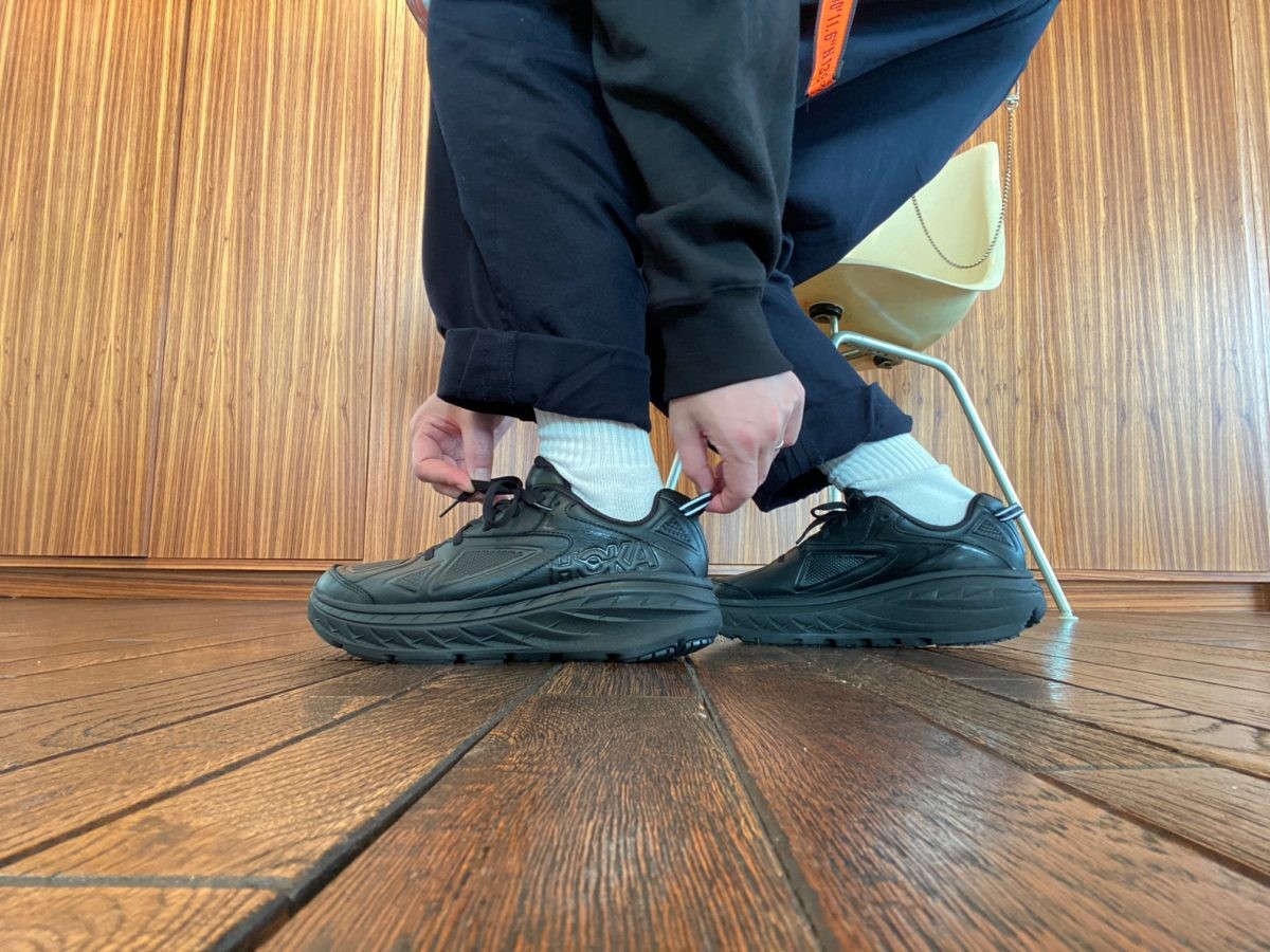 ホカ オネオネのロードシューズラインナップの中で最もクッション性の高いBONDI(ボンダイ)シリーズ。そこに本作ではフルグレインレザーのアッパーでアレンジすることで、ビジネスカジュアルやファッションなど、あらゆるシチュエーションで合わせやすくブラッシュアップされています。