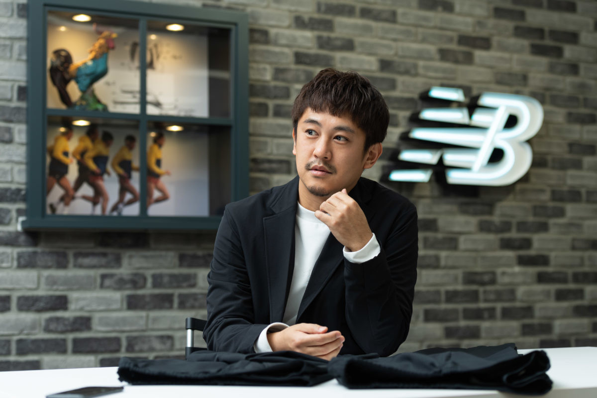 「THE CITYコレクションは、スニーカー通勤が国から推奨されるなか、僕自身が実際に街や通勤電車の中でニューバランスのスニーカーを履いて通勤される多くの方の姿を見て、足元だけではなく、頭からつま先まで快適なウェアを提供できれば、ビジネスマンスタイルに新たなニーズを生み出せるのではないか、そんな思いからスタートしました」。そう話すのは、本コレクションを指揮した、デザイナーの金 赫洙(キム ヒョッス)さん。続けて、「アパレルブランドではなく、シューズブランドが手がけることで、真新しさや機能軸への説得力も生まれる」とも。