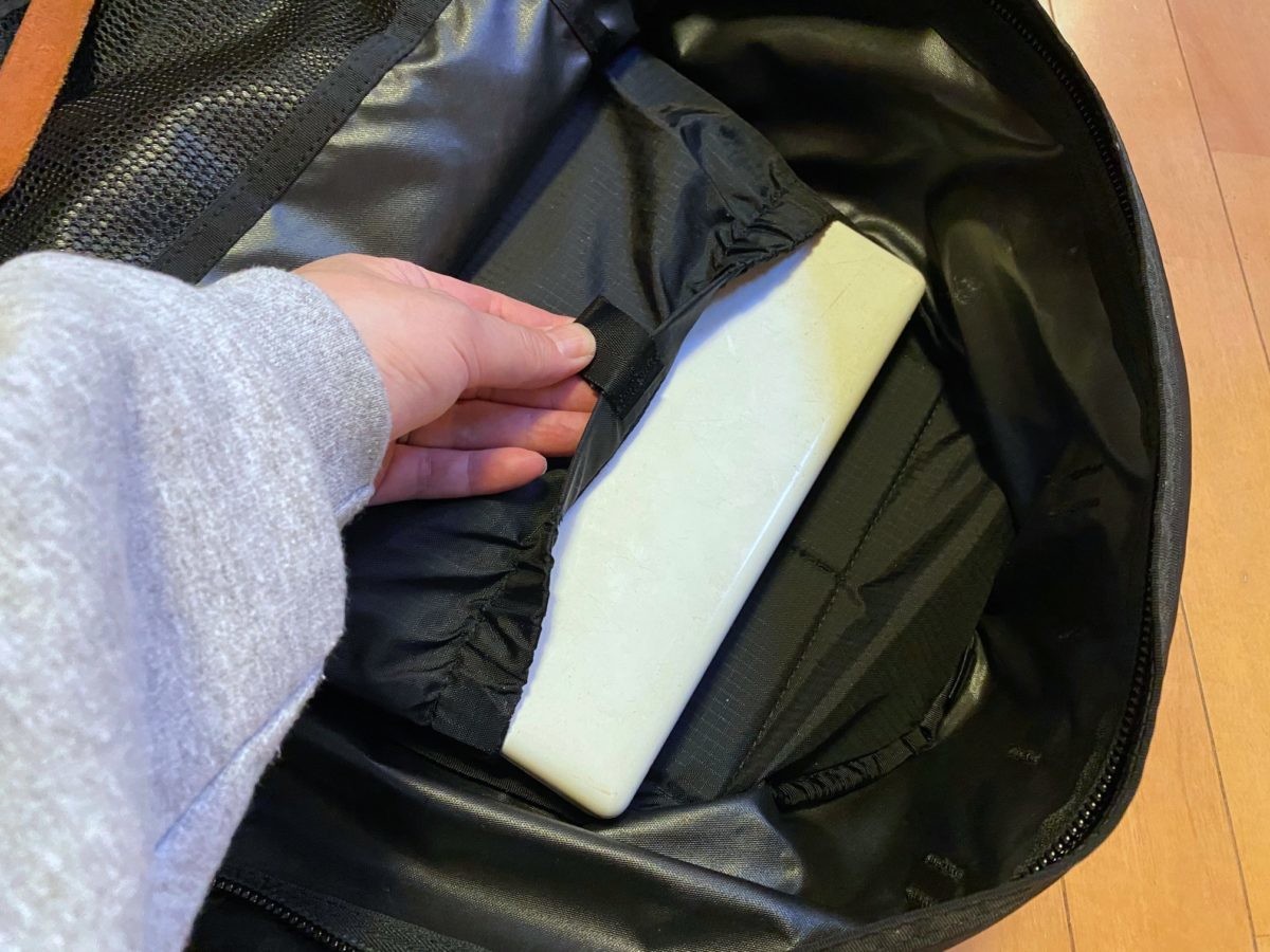 大きめのスリーブを設けているので、PCやタブレットの収納にも便利。
