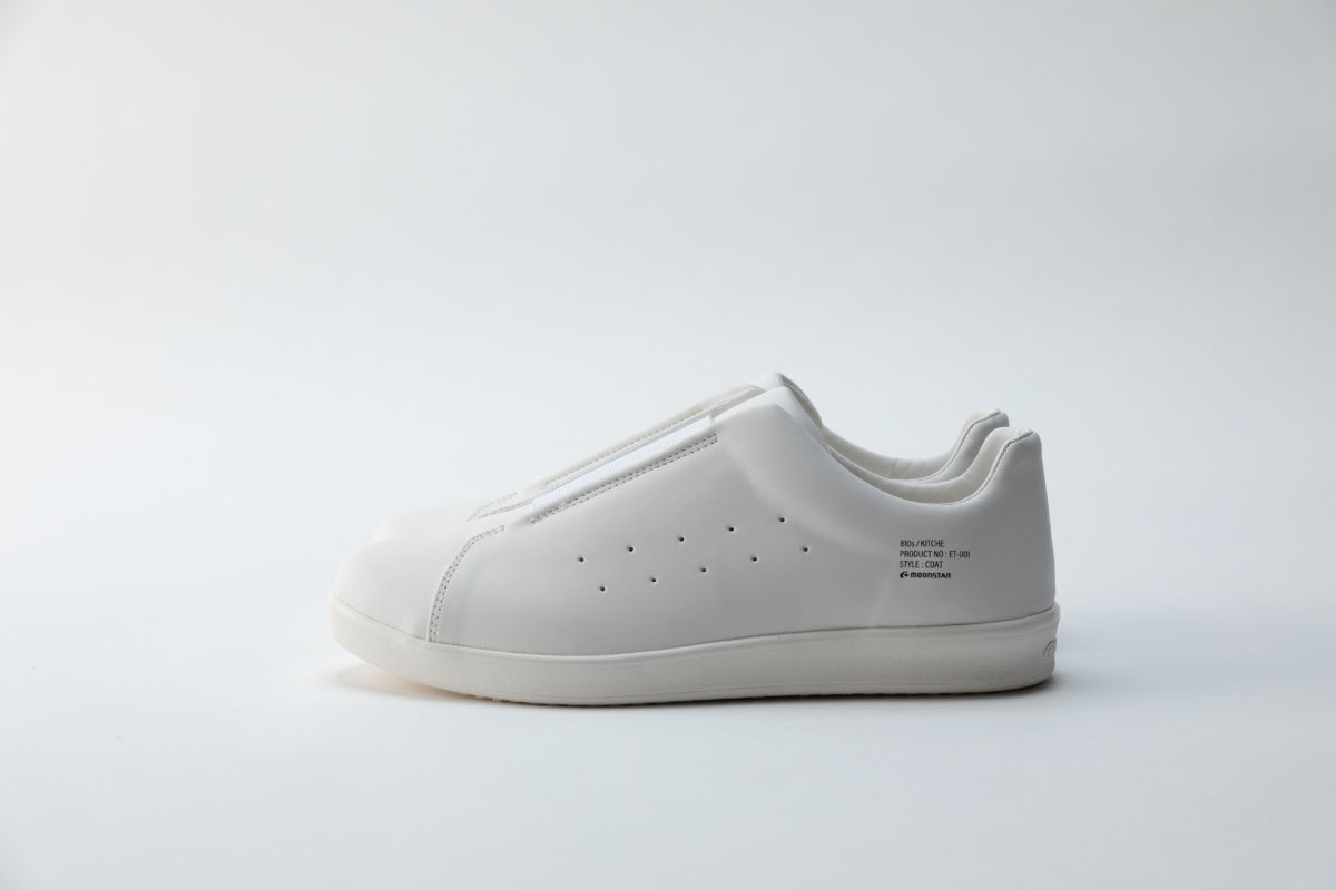 福岡県久留米市にある自社工場で熟練した職人が手がけるシューズメーカーのムーンスター。スクールシューズなどの専門靴の制作に定評のある同社から、2015年に発売されたキッチンシューズの「KITCHENSTAR 01」をベースにした1足「810s / KITCHE (エイトテンス キッチェ)」が発売されます。油や水に強い素材を採用しつつ、極力の無駄を省いたミニマムなデザインにより、タウンユースに改良された新作となっています。