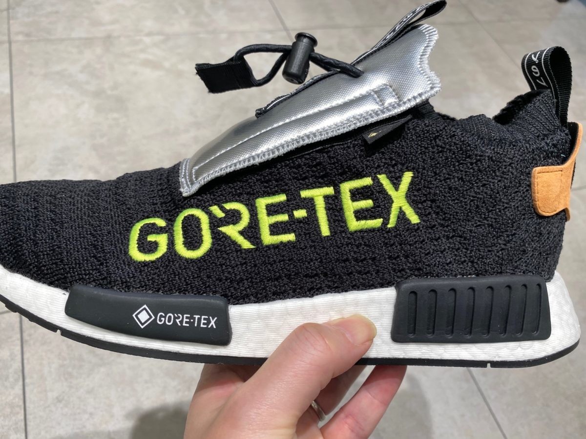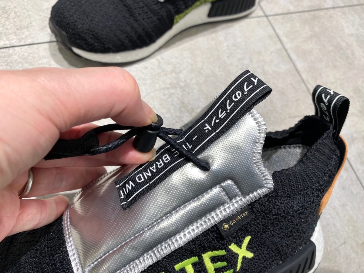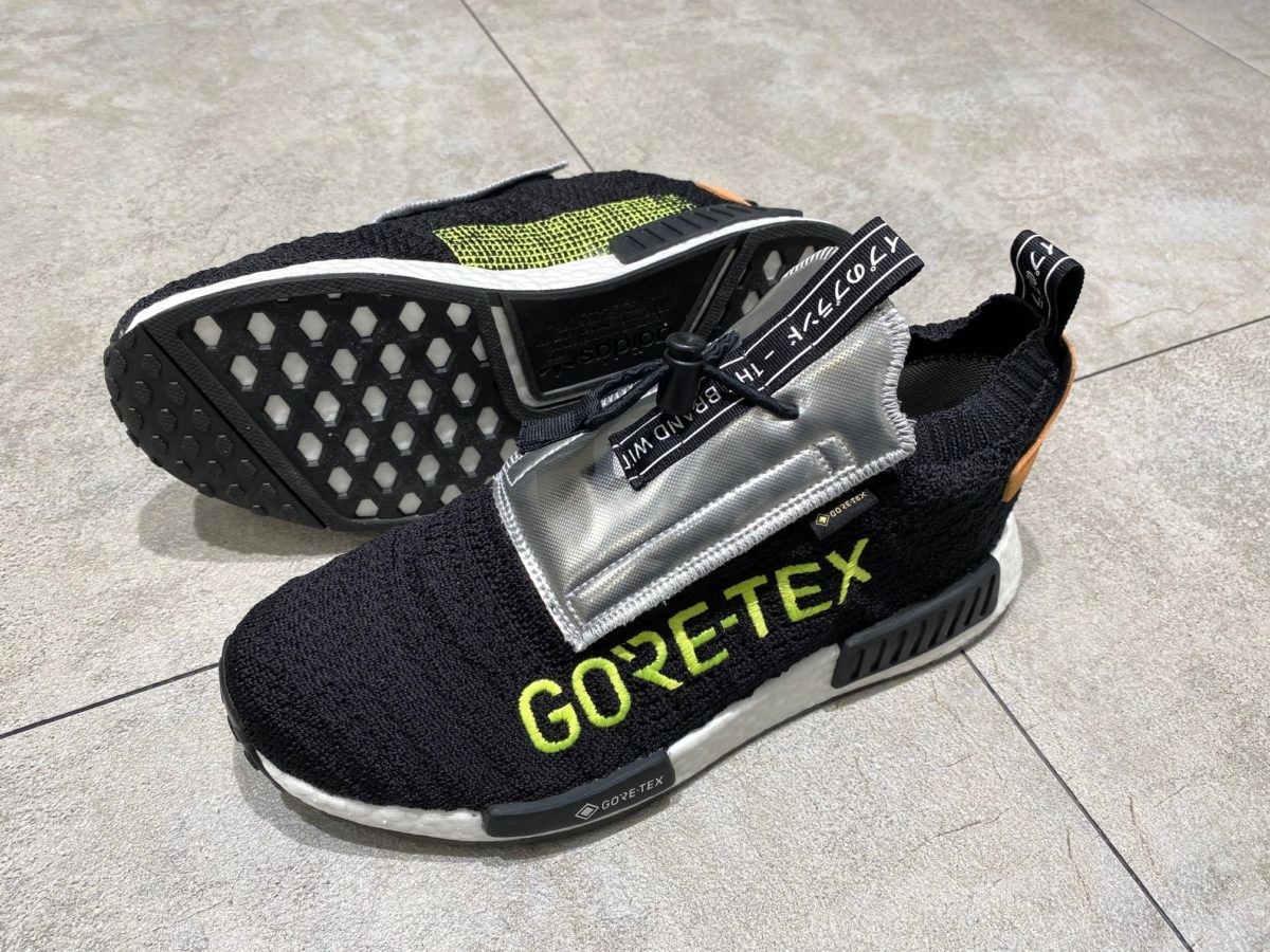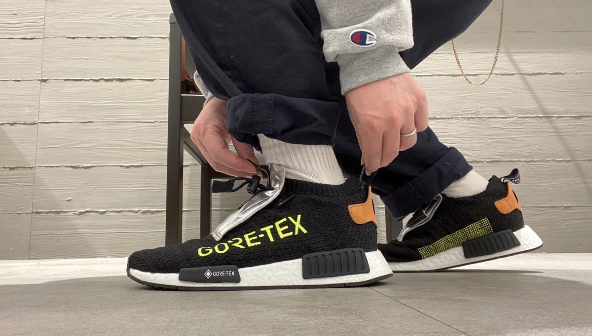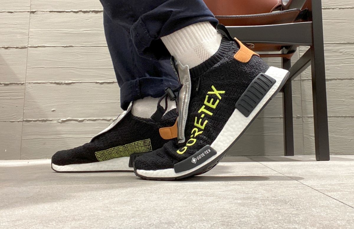ニットアッパーでスマートシルエットのNMDは暖かい季節で活躍するイメージですが、GORE-TEX採用モデルなら足下の悪くなりがちな冬でも大活躍ですね。さらにGORE-TEXの刺しゅうがインパクトありますので、コーディネートのアクセントにもバッチリと機能してくれます。