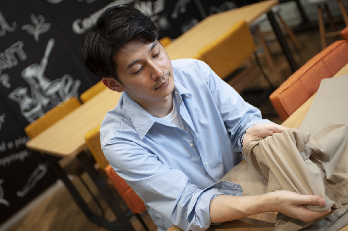 実際に着用してみて、他にはない秀逸なストレッチ性によって抜群の穿き心地を実現していることが分かりました。それを詳しく知るためグローバルワークに赴き、直接話を伺ってみることにしました。