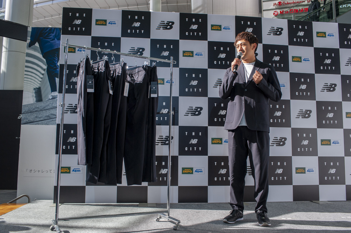 名駅前イベントスペースでの新商品発表会は、吉本芸人が登場したこともあり、通行人の目を引く催しものでもありました。先日ゲットナビウェブで紹介した通り、THE CITYコレクションは働く大人のために開発された新アパレルコレクション。ビジネスやプライベートなどオンオフで着用でき、5つのシルエットが用意された快適な着心地のパンツも特徴です。なお、本コレクションは全国の「スポーツデポ・アルペン」限定展開となります。