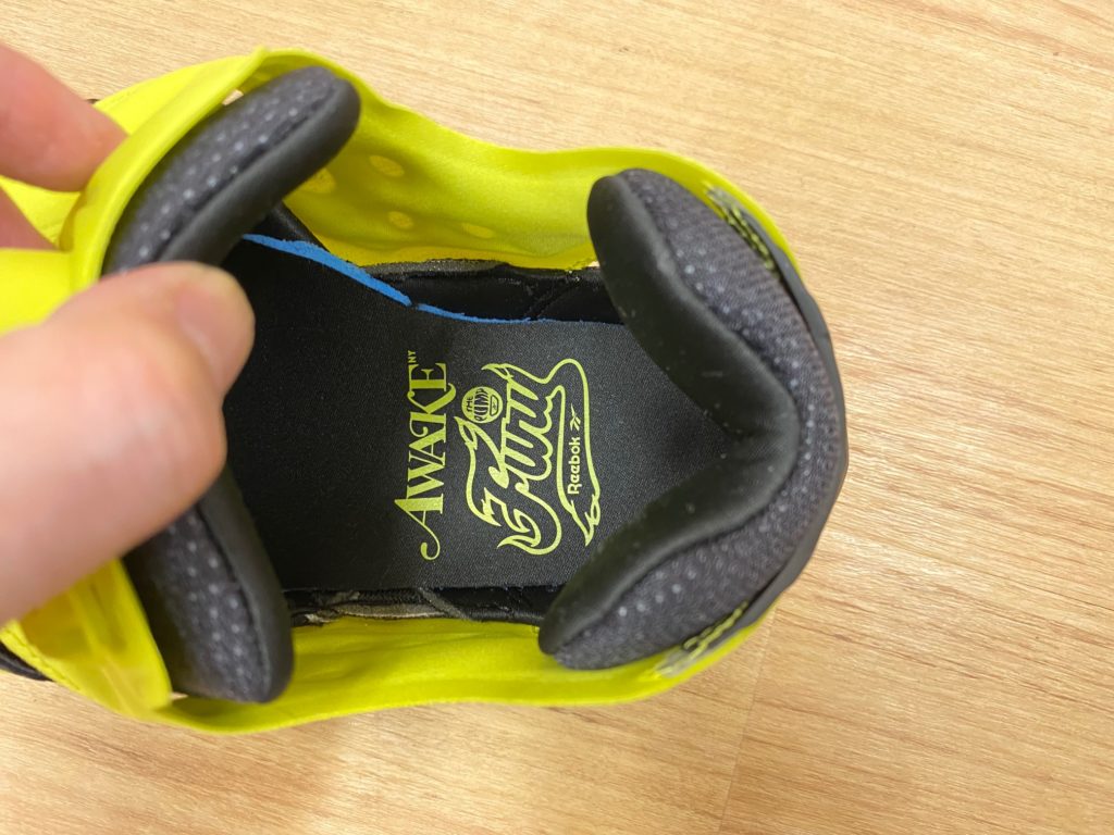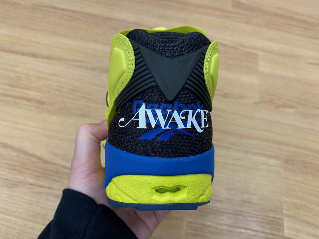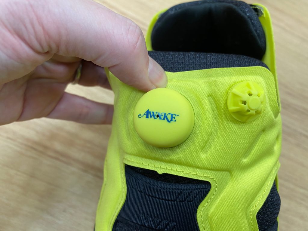 空気をアッパーに送り込むポンプのお馴染みのボタンにはさり気なくもAwake NYのロゴがブルーで配されています。
