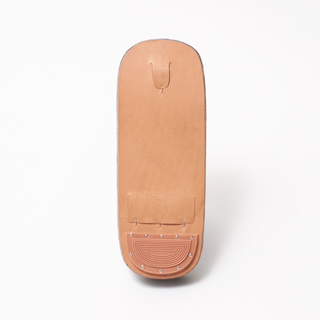 浅草の和装専門職人とタッグを組み一から作り上げた同製品は、天板の形を伝統的なスクエアに仕上げながら、鼻緒の太さでモダンな印象になるようバランスを取ったデザインで、厚みのある低反発材を中に敷き詰め、歩行時の足あたりの良さと、足への衝撃を抑えた機能性を兼ね備えています。