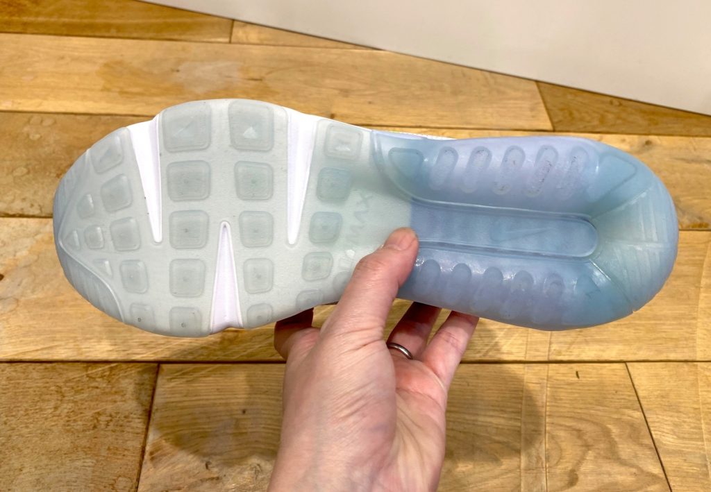 ナイキ エア マックス 90のワッフルアウトソールをベースに、本作では凹凸の形状にアップデートして屈曲性をさらに高めています。