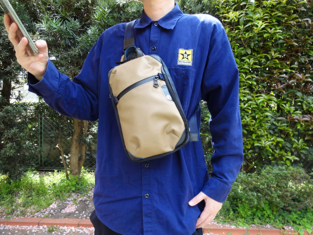 コンパクトだけどタブレットもラクラクに持ち運べる収納力が魅力的です。しかも身体にピッタリとフィットしてくれるので、着用しながらも身体の動きを邪魔しません。さり気ないレザーパーツがピリッとアクセントにも効いていて、大人の休日に相応しい落着いた雰囲気となっていますよ!