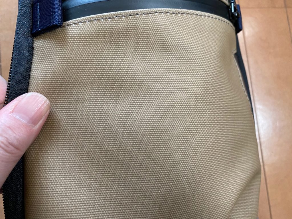 生地はPVCコーティングを施した10号キャンバスに、高強度で摩擦に強いコーデュラバリスティックナイロンを組み合わせて、防水性とタフさを兼ね備えています。